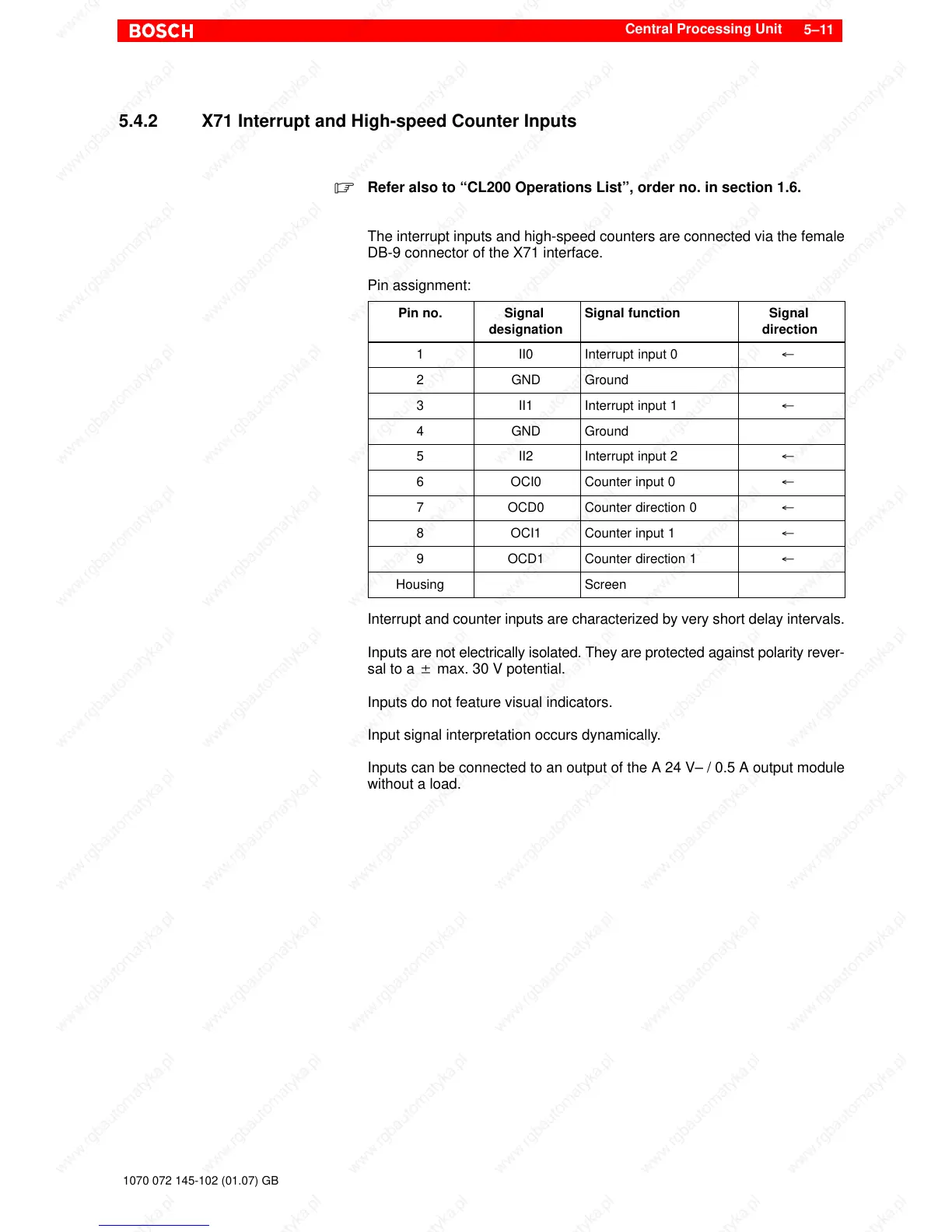 5.4.2 X71 Interrupt and High-speed Counter Inputs