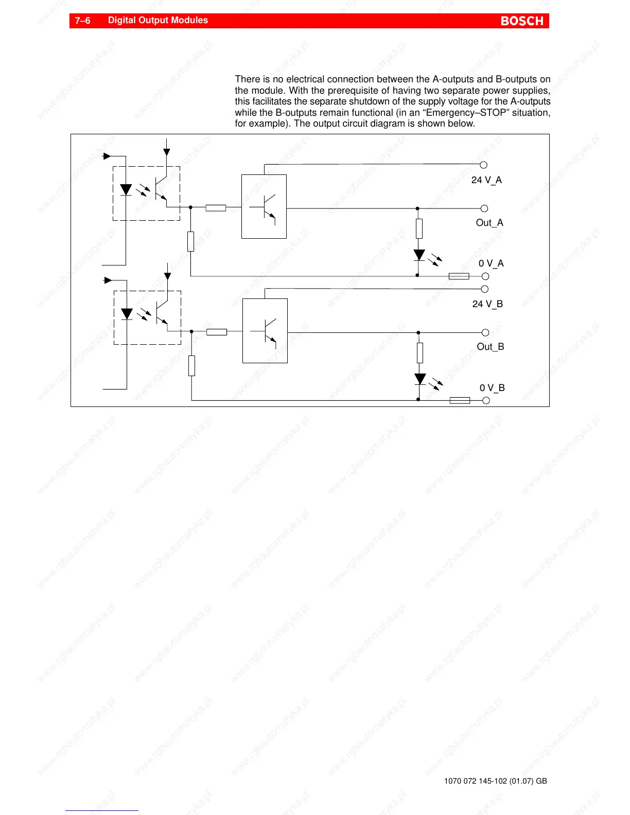 while the B-outputs remain functional (in an “Emergency–STOP” situation,
