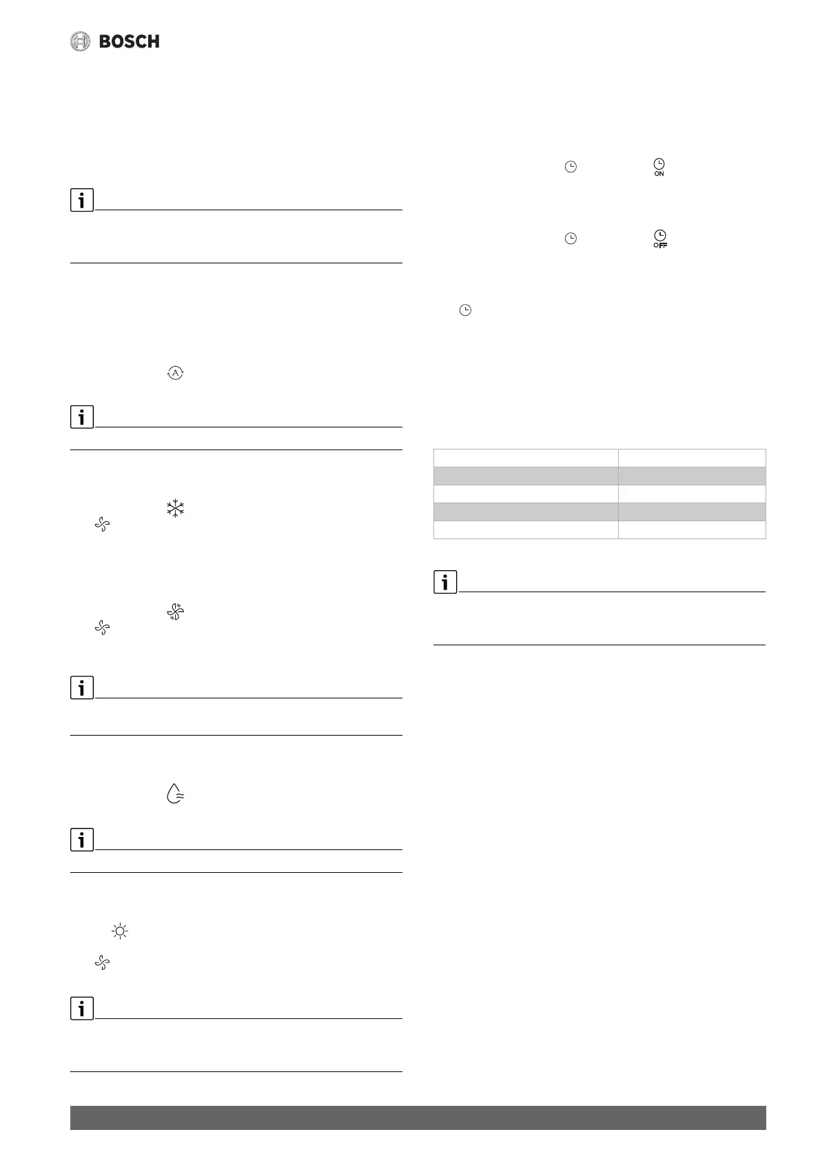 Ventilátor üzemmódban a hőmérséklet nem állítható be és nem