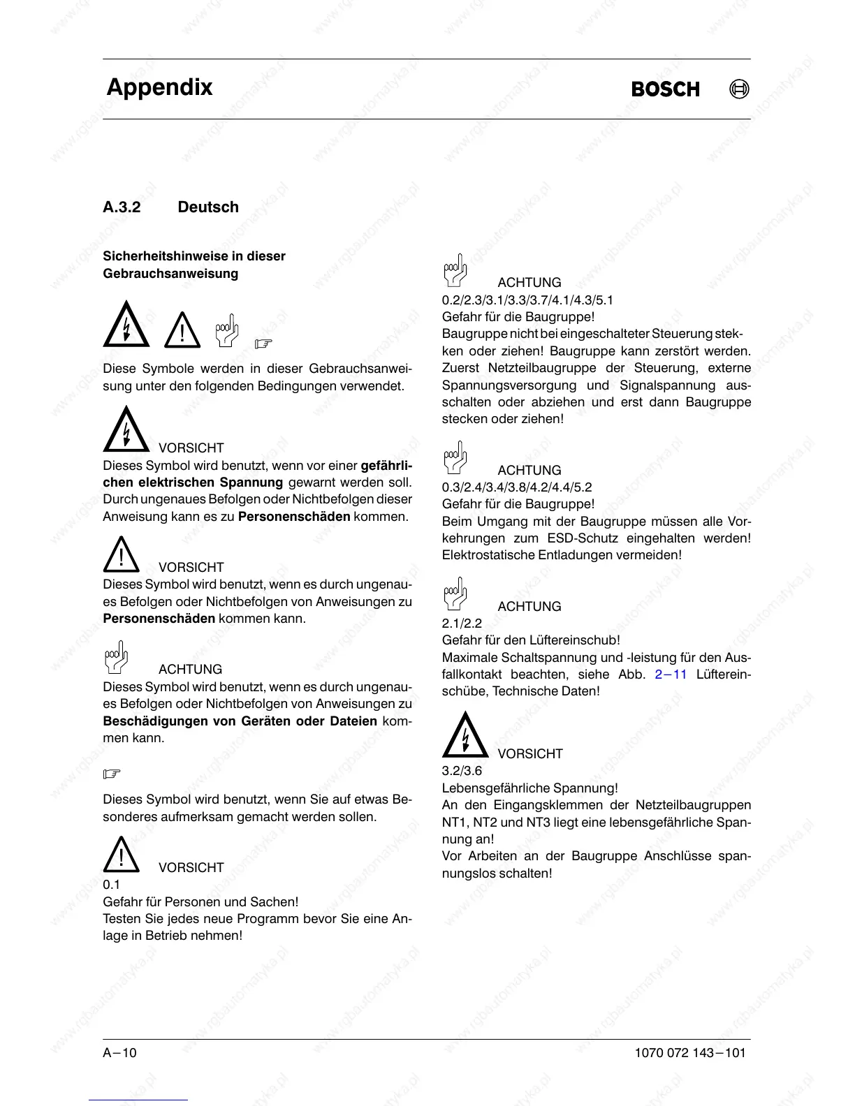 Vor Arbeiten an der Baugruppe Anschlüsse span