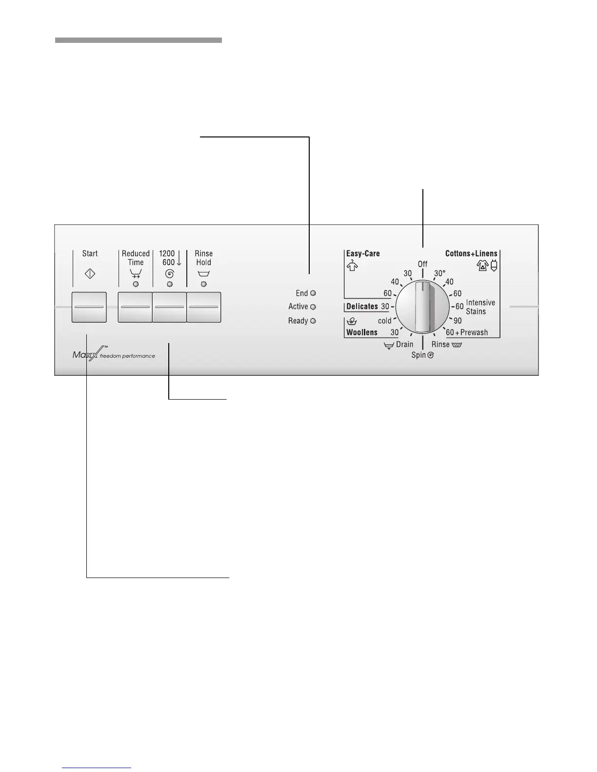 Bosch Classixx 1200 - Control panel; 1. Select a programme; 2. Control lights illuminate; 3. Press buttons for additional functions