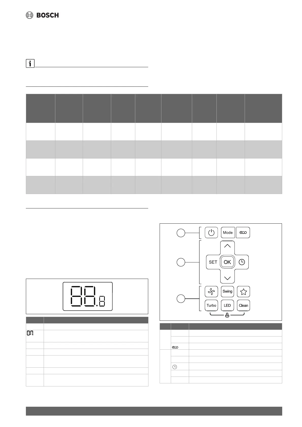 Bazı fonksiyonlar etkinleştirildiğinde gösterilir. İç ünite