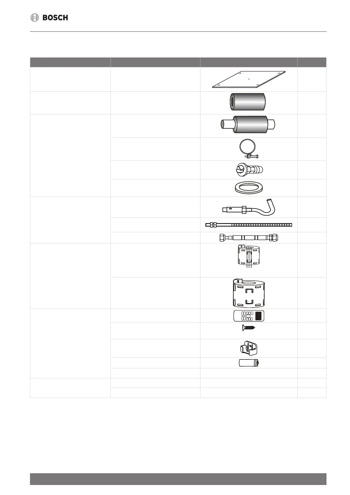 The air conditioning system comes with the following accessories. Use all of the installation parts and accessories to install the air conditioner. Improper