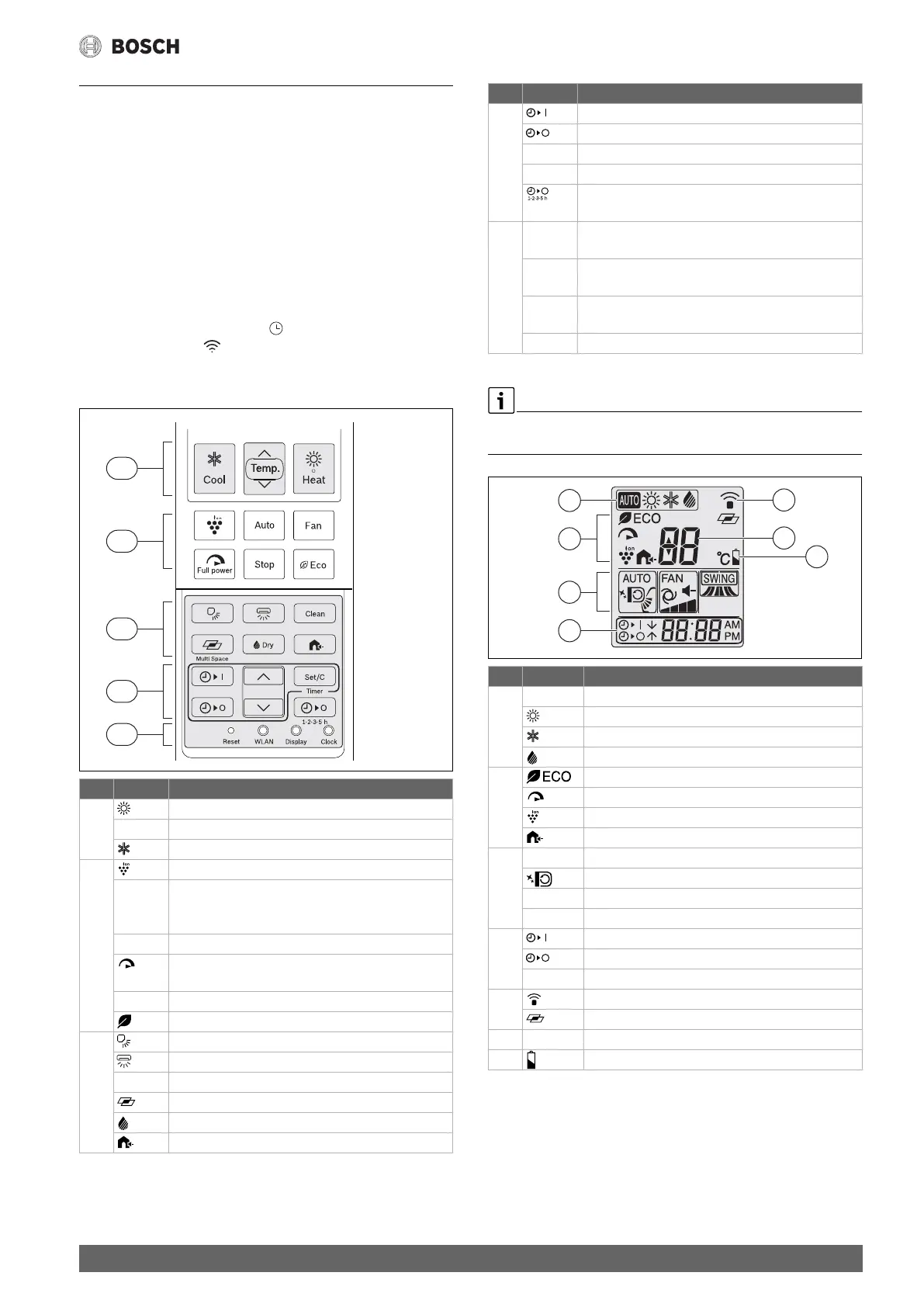 Tab. 5 Symbole na wyświetlaczu pilota zdalnego sterowania