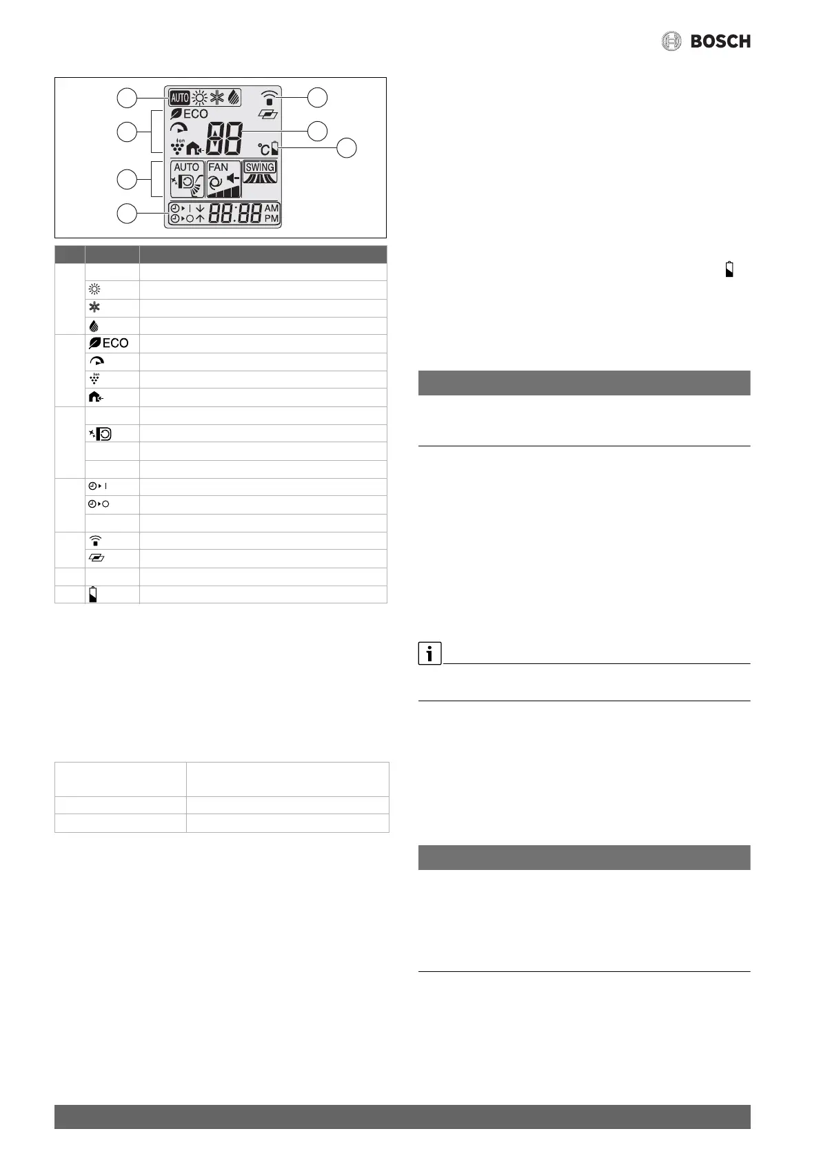 Tab. 5 Symboles sur l’écran de la commande à distance