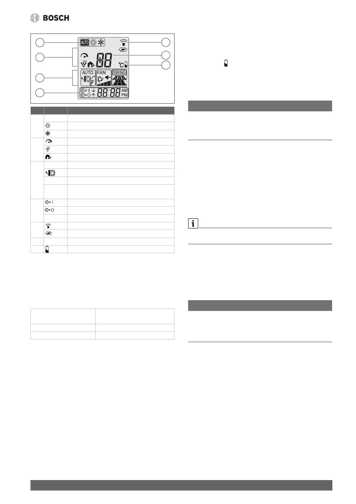 Tab. 5 Symboler på fjernbetjeningens display