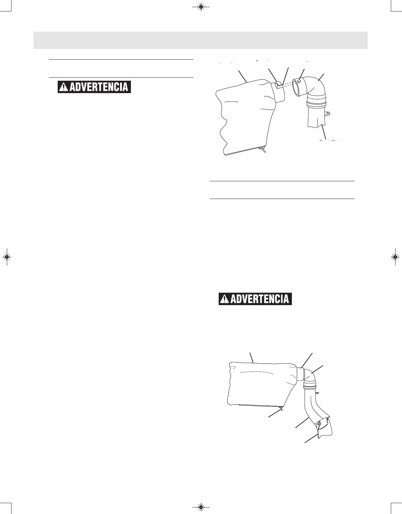 esté libre del conducto para polvo. Reinstale el codo