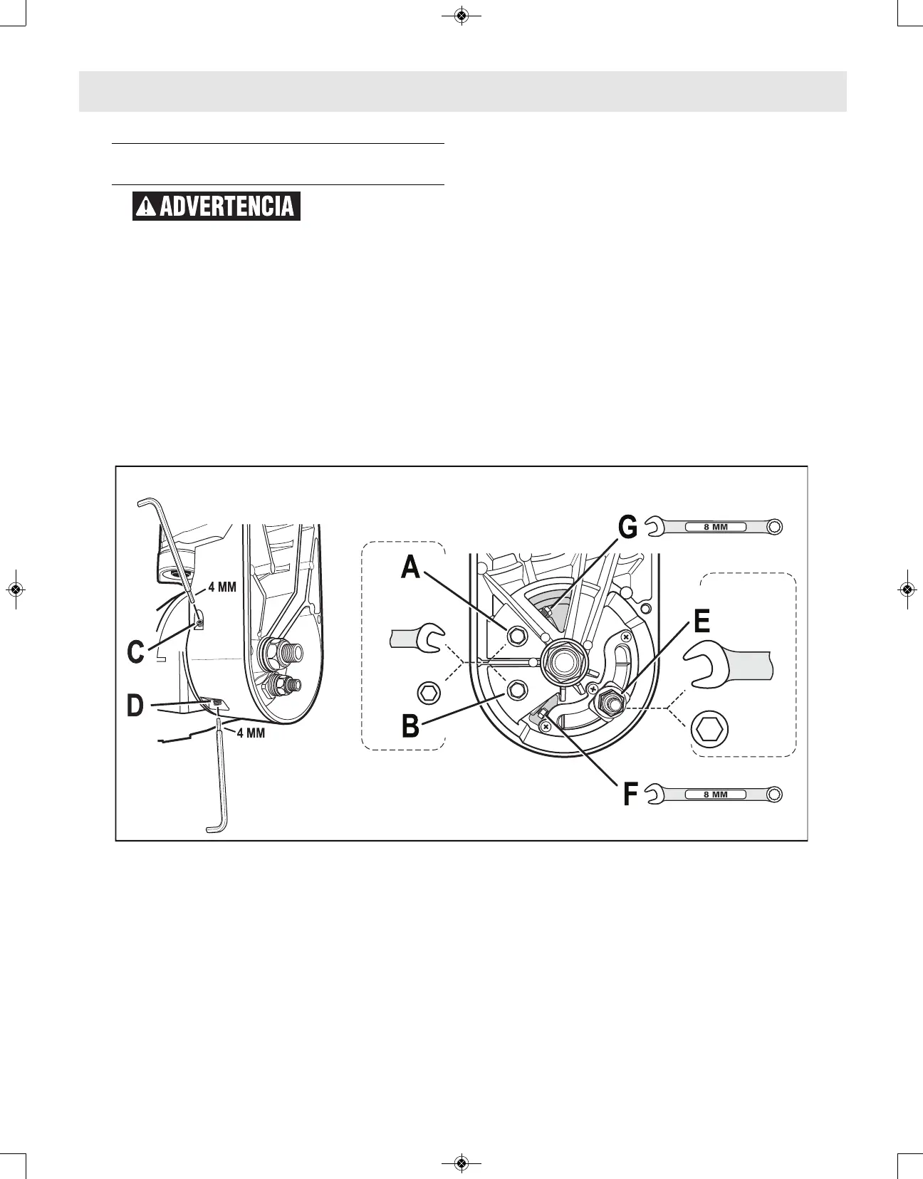 7. Apriete las cabezas de los pernos “A” y “B” utilizando la