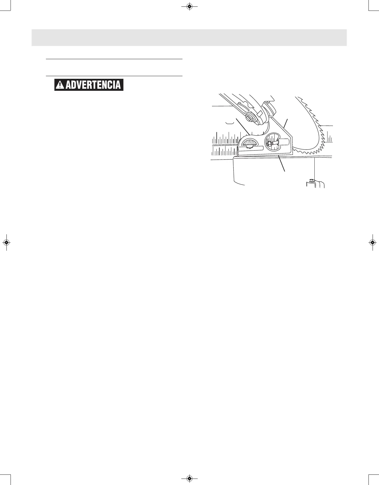 escuadra. Si el plato de la hoja de sierra no está en