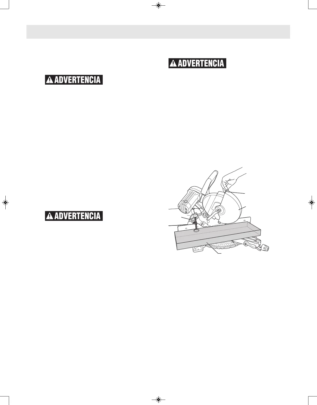 trayectoria proyectada de la hoja de sierra. Mantenga las