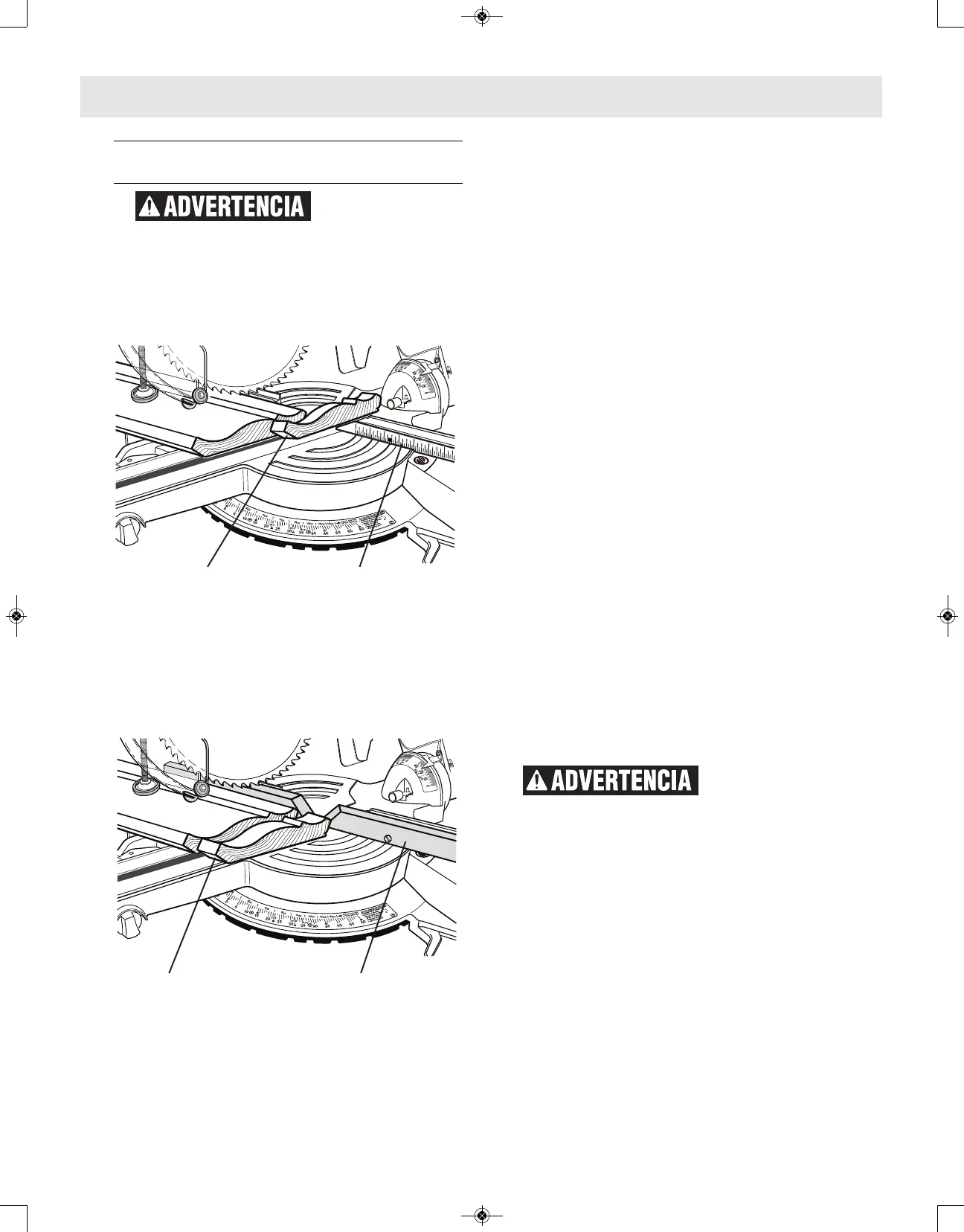 proyectada de la hoja de sierra. Mantenga las manos por lo