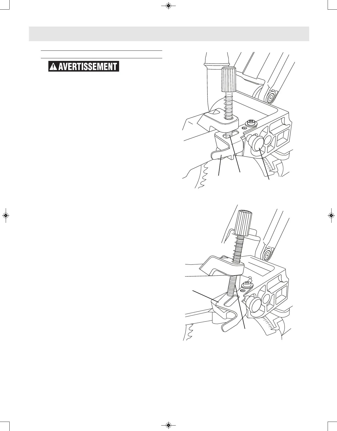 – Appuyez sur la tête de la scie et regardez la vis de butée