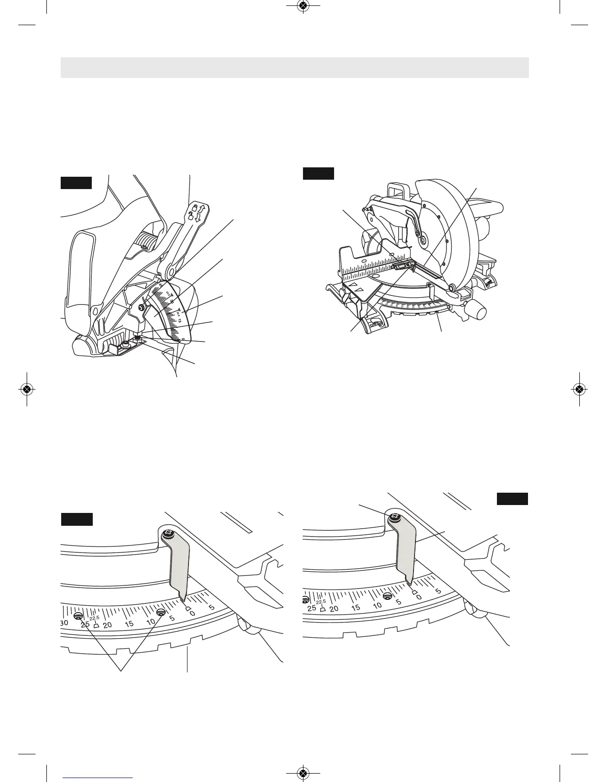 5. Serrez toutes les 4 vis – desserrez le pointeur de l’échelle