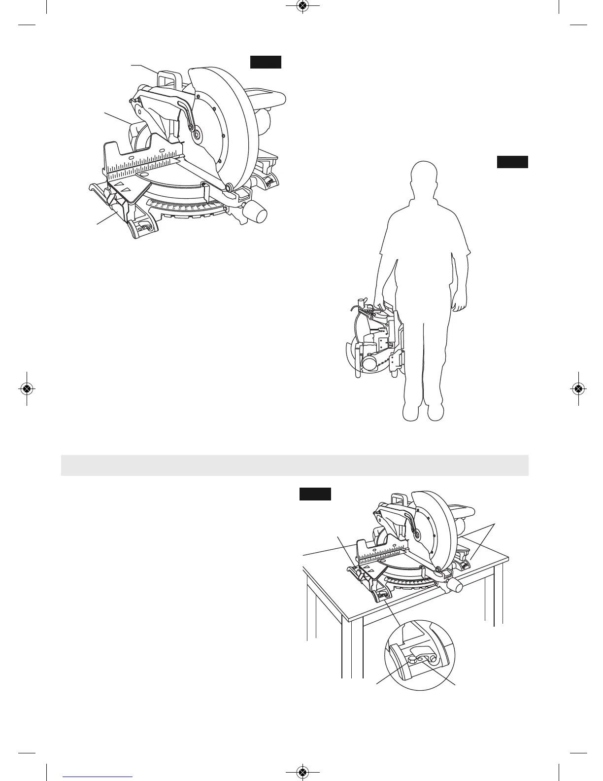 Levante la sierra por el mango de transporte trasero