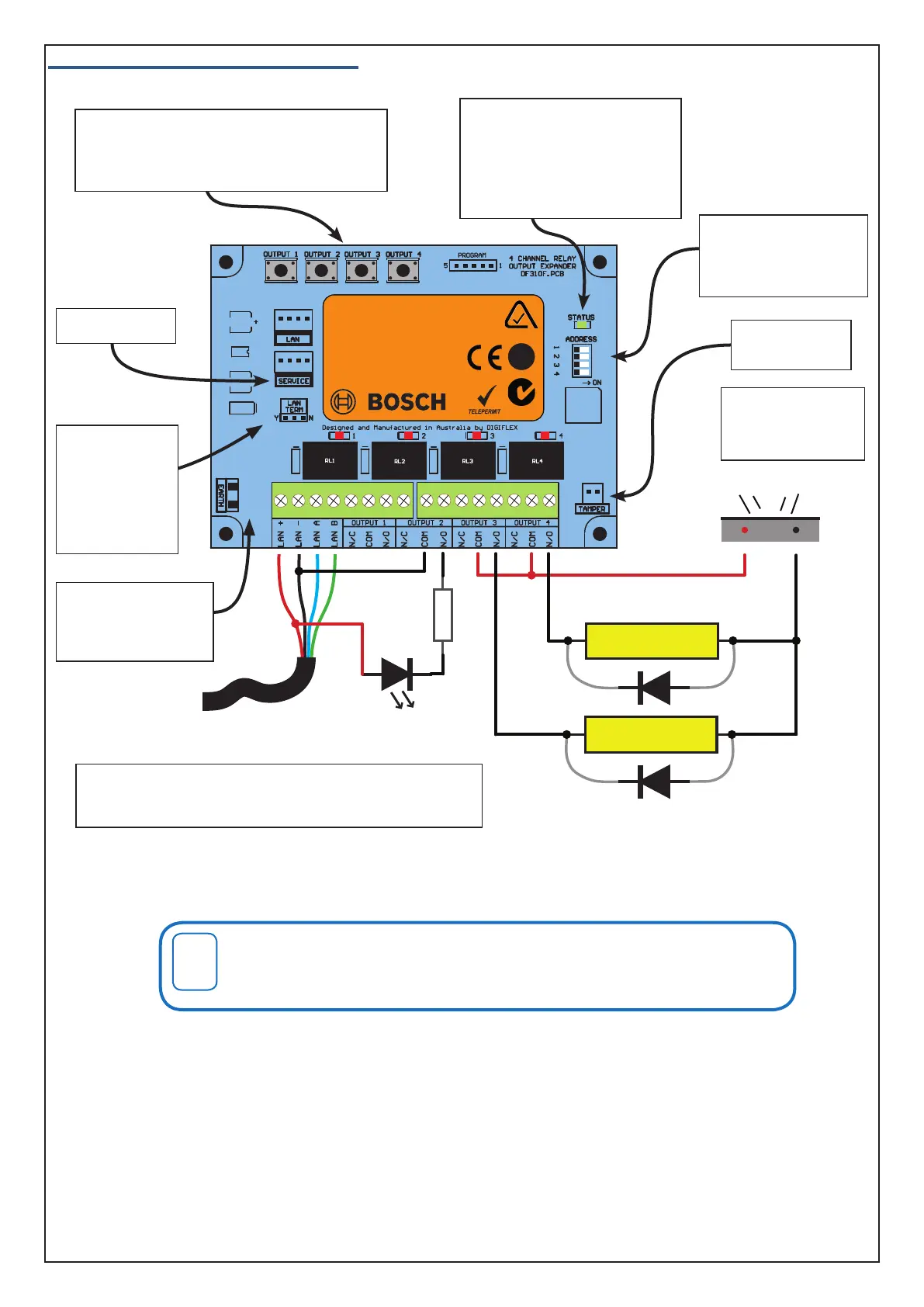 the LED taken from the LAN and Outputs 3 and 4 controlling door strikes