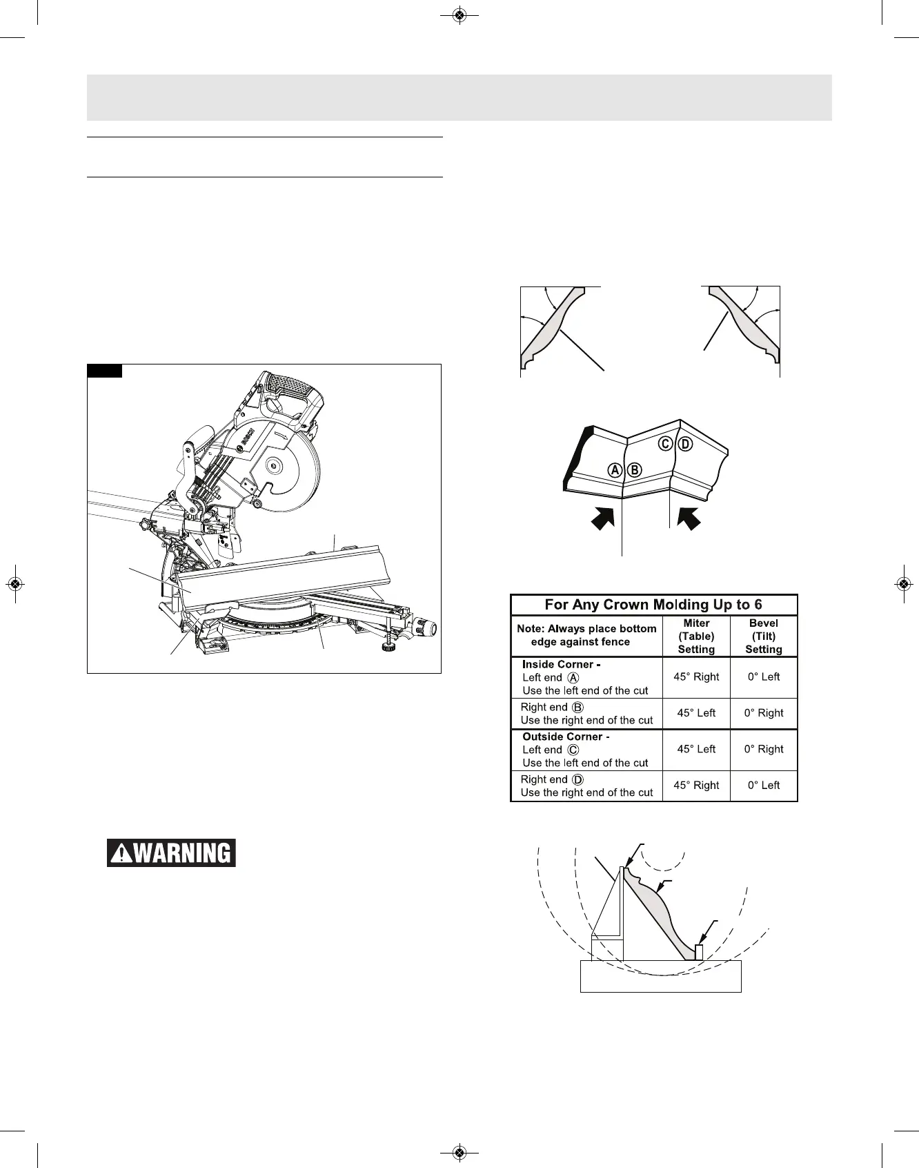 MITER AND BEVEL SETTINGS FOR STANDARD