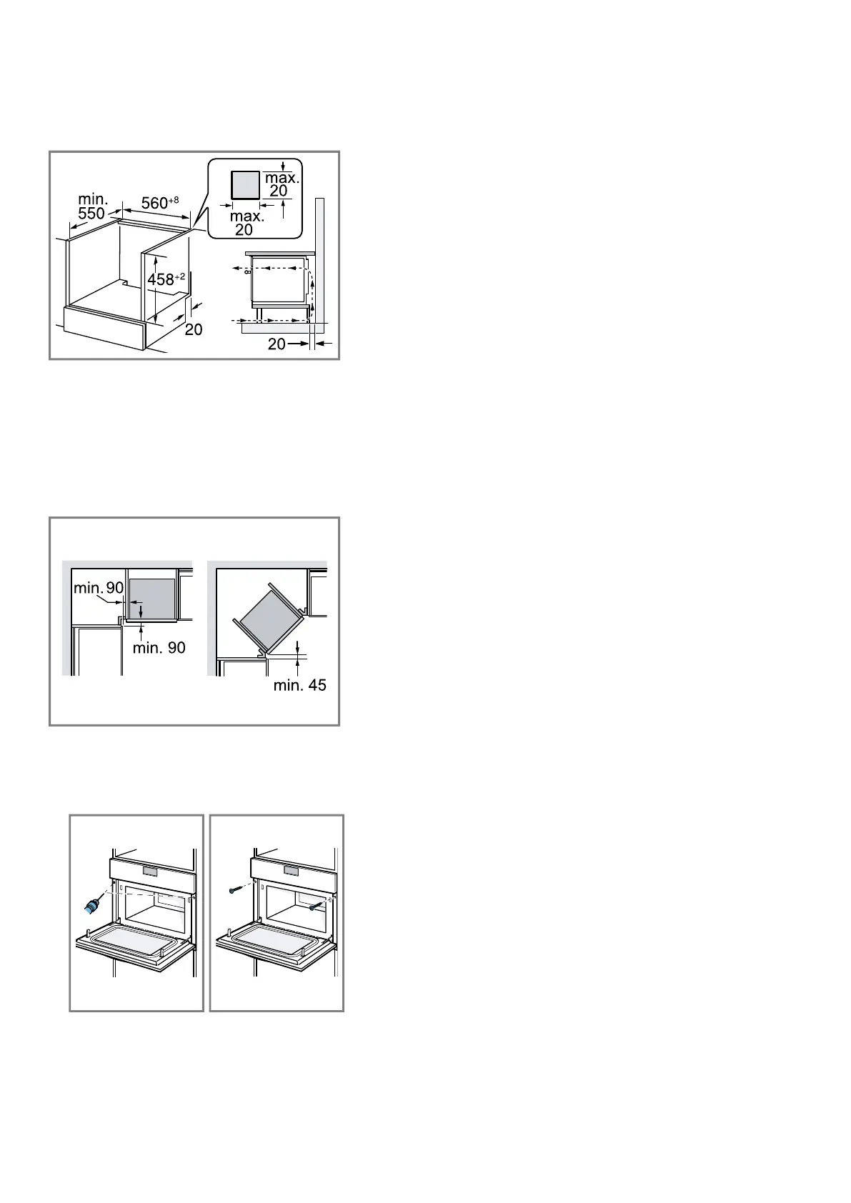 clearances when installing below a worktop.