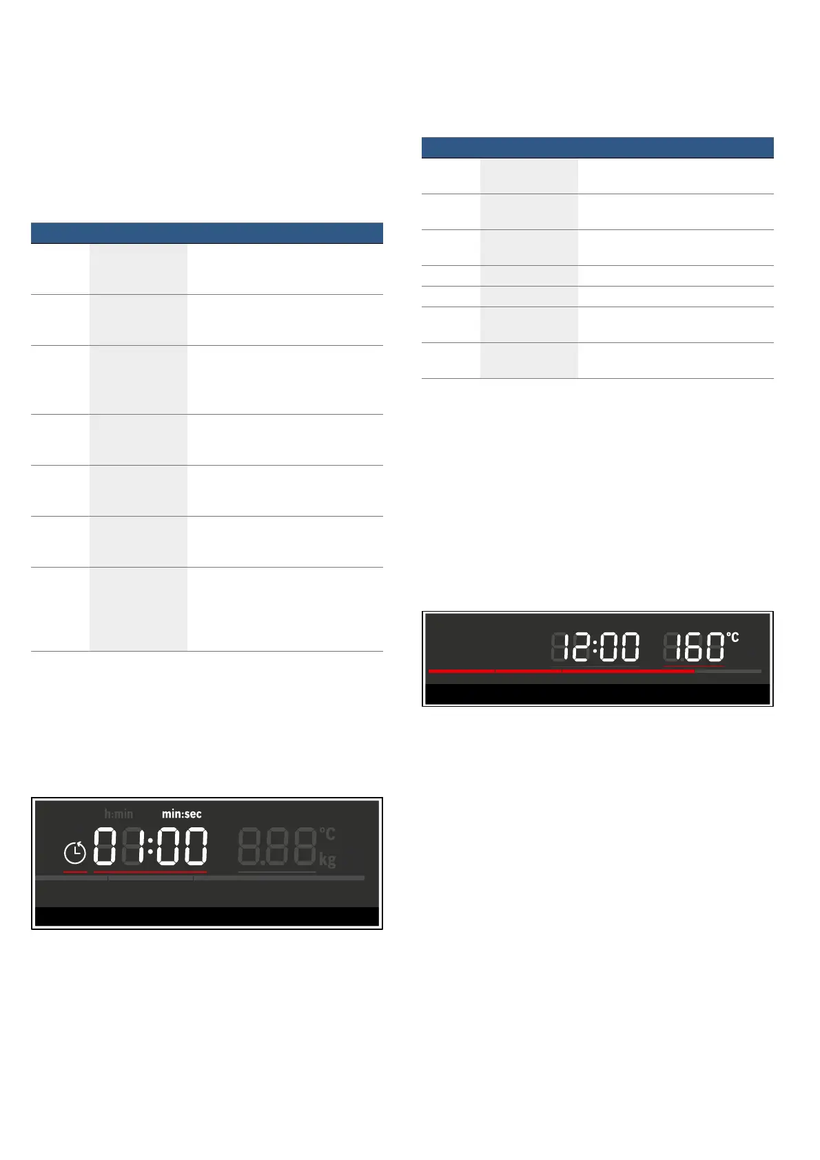 min:sec Minutes/seconds Cooking time in minutes and seconds
