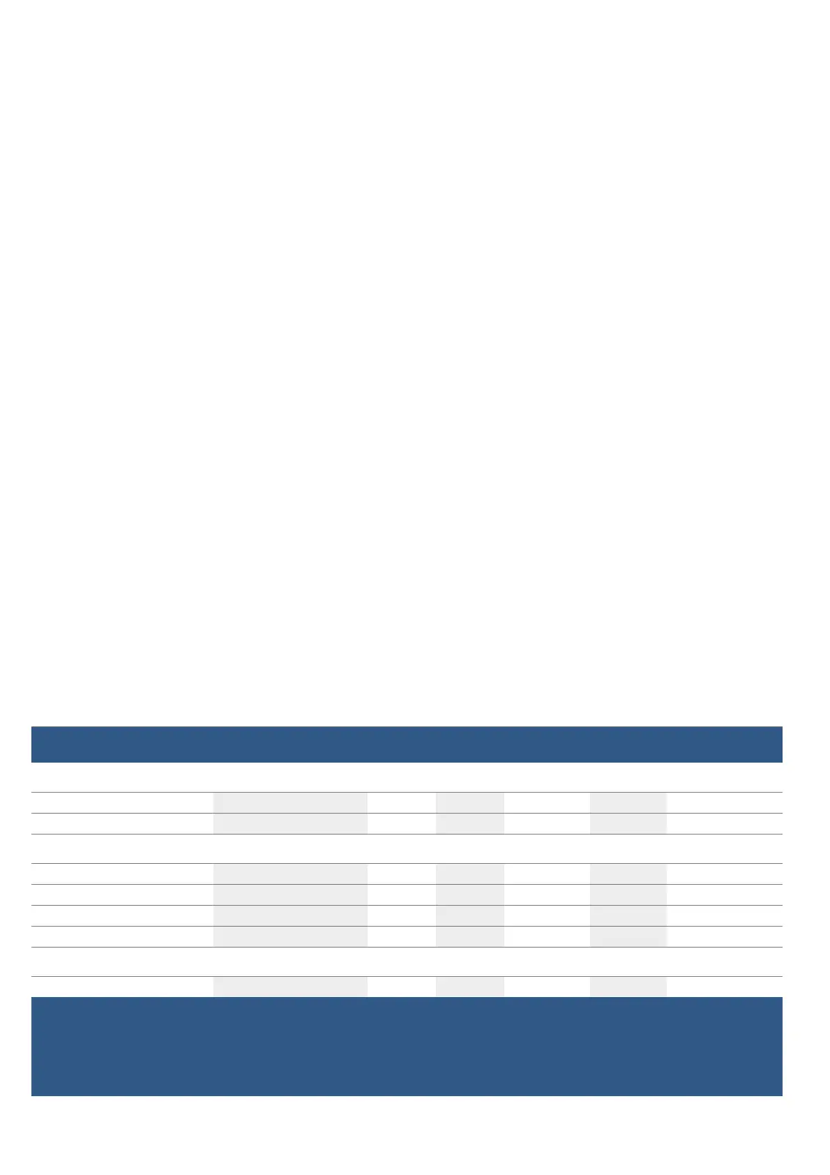 the settings tables, the following basic rule applies:
