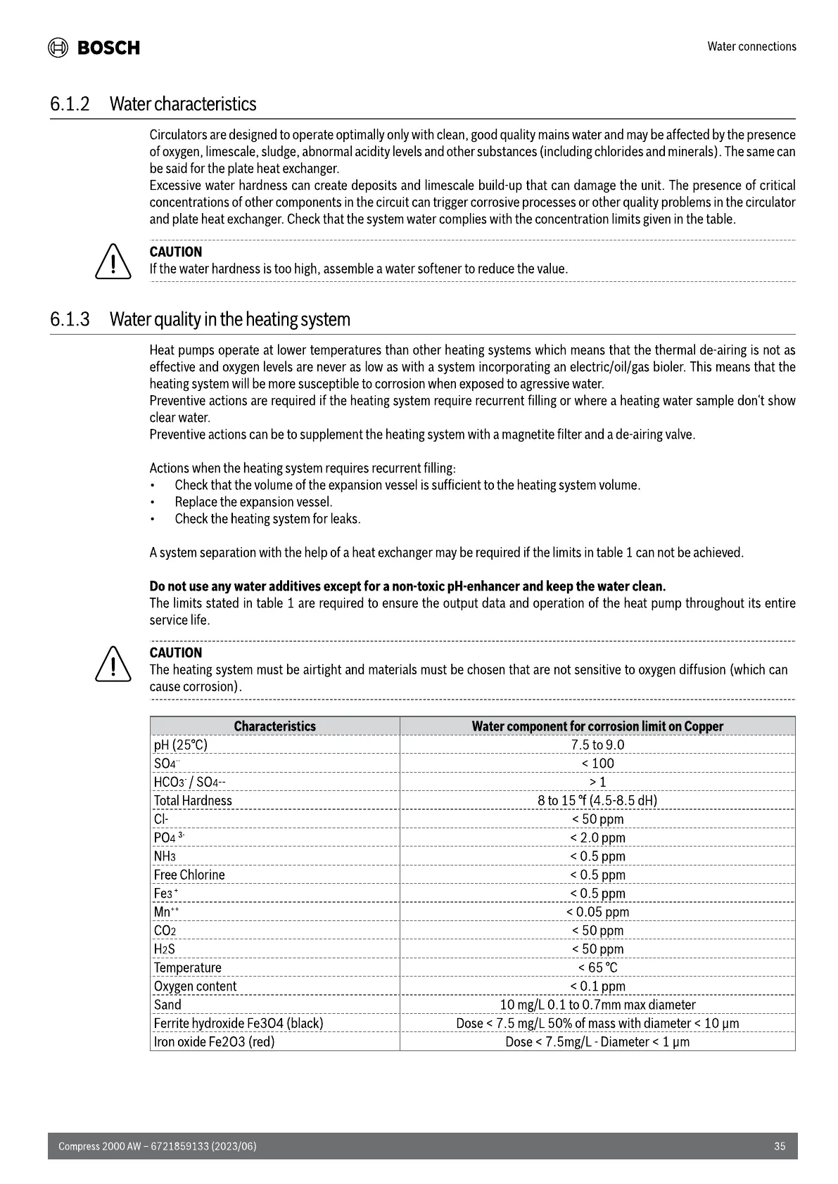 Bosch Compress 2000 AWF - System Water Characteristics