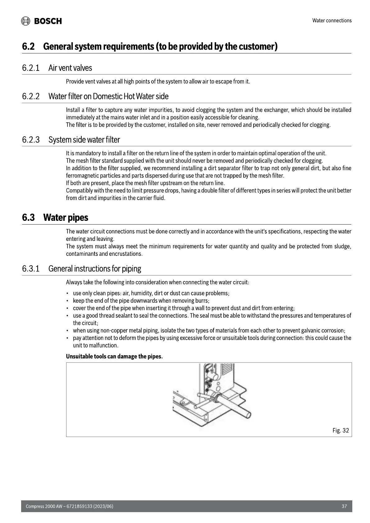 Bosch Compress 2000 AWF - Water Pipes and Piping Instructions