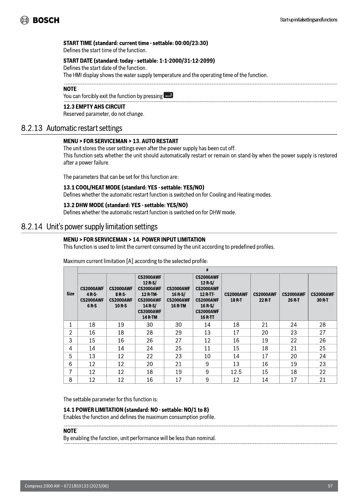 Bosch Compress 2000 AWF - Automatic Restart Settings