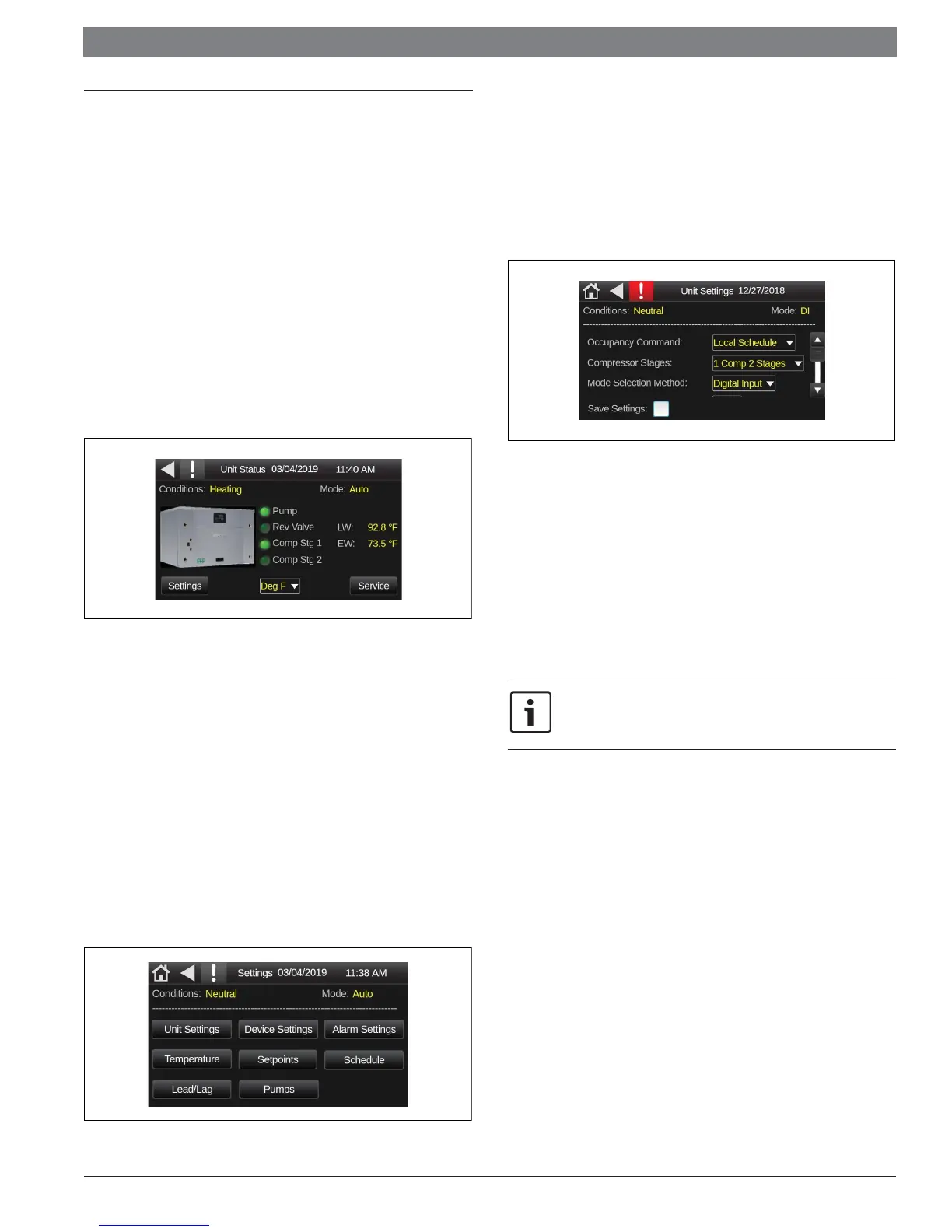 The Unit Status screen (Figure 14) is the home page for the Control Air