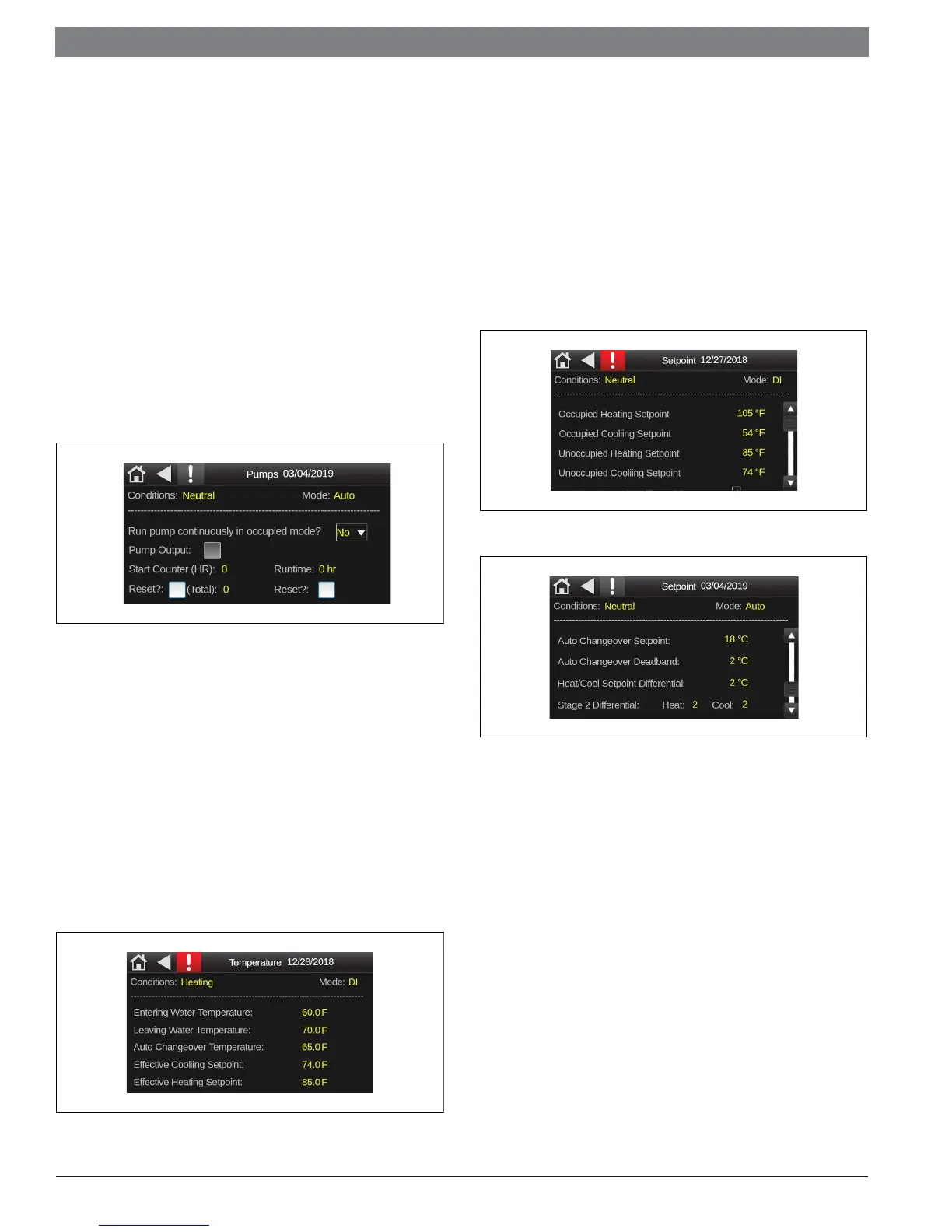 temperatures and temperature setpoints.