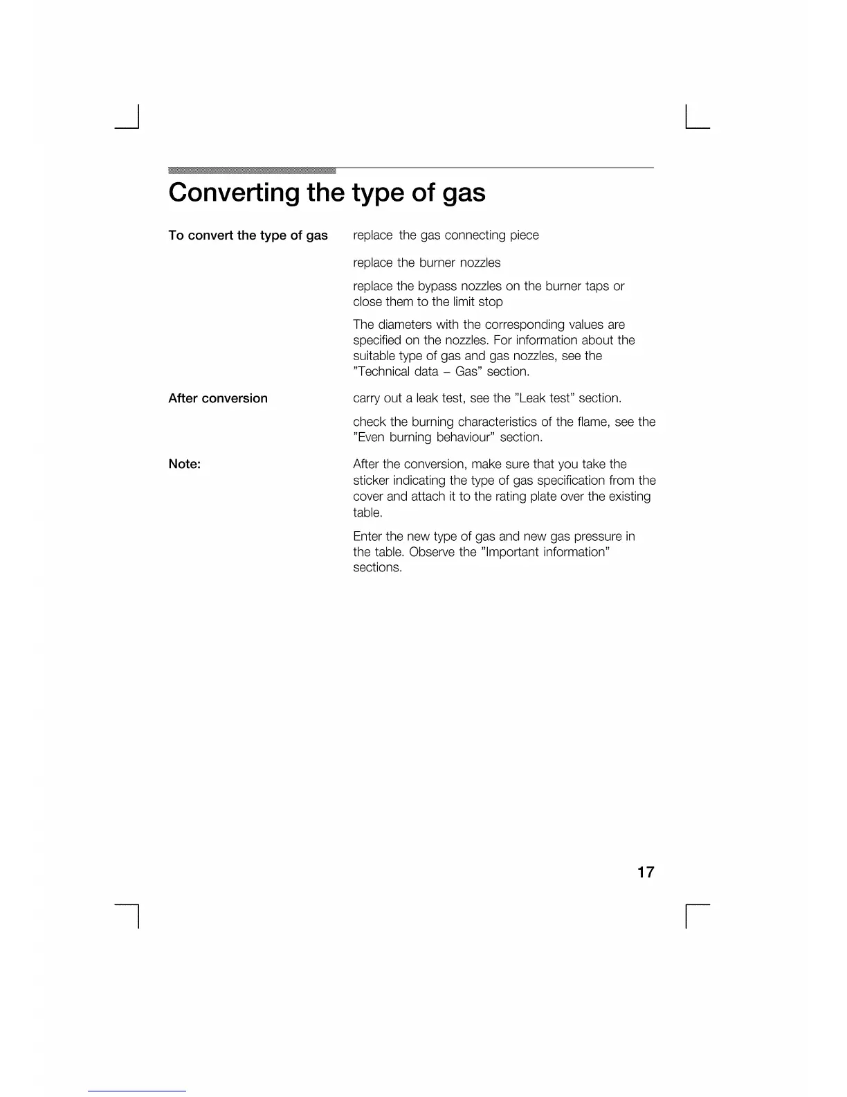 Bosch cooker - Converting the type of gas; To convert the type of gas; After conversion