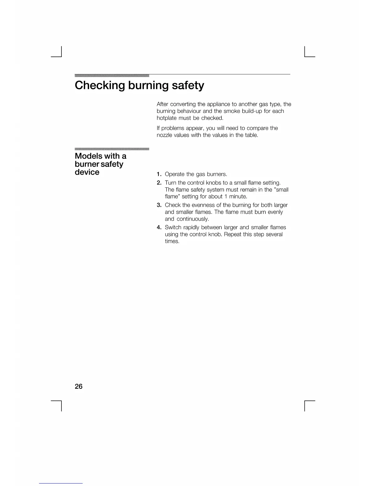 Bosch cooker - Checking burning safety; Models with a burner safety device