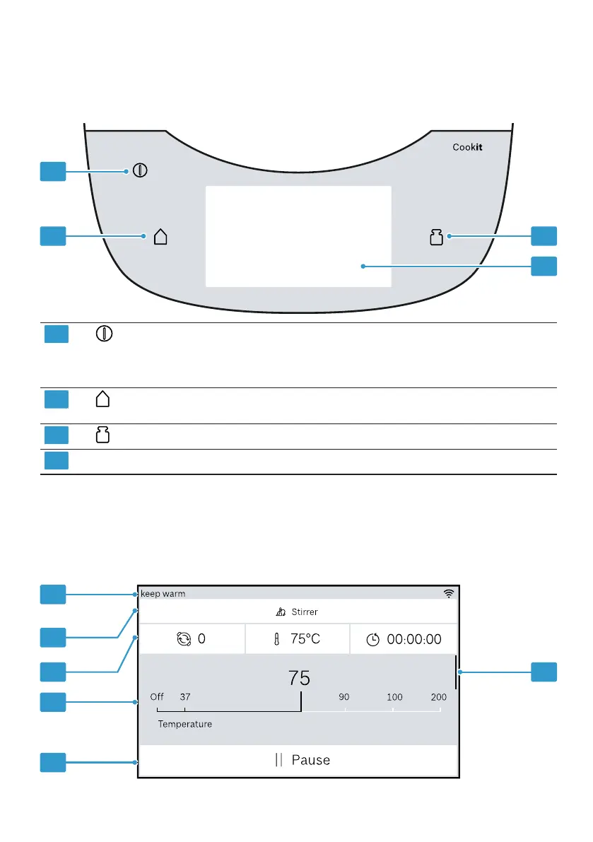 The touch display functions both as an indicator and a control element. The