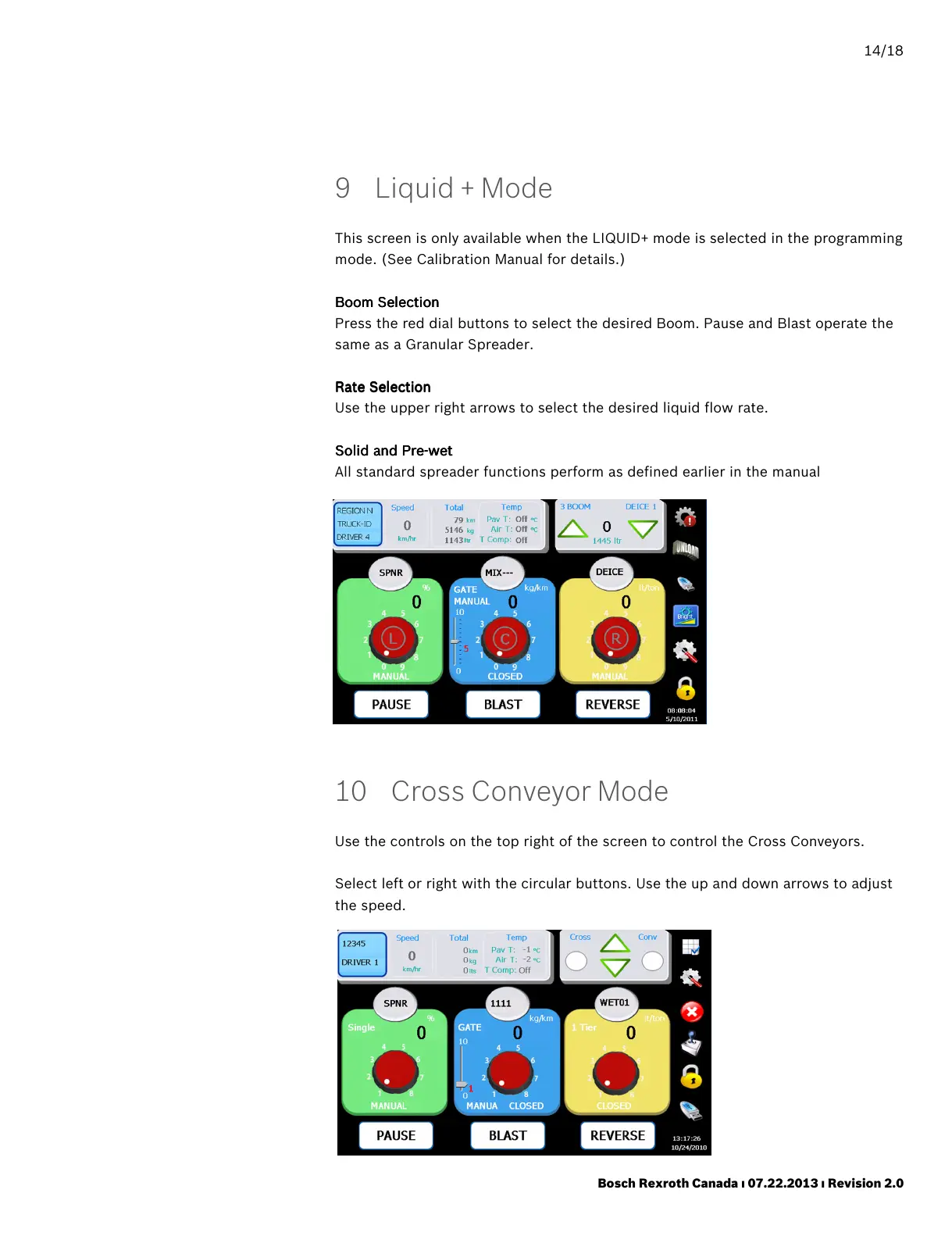 All standard spreader functions perform as defined earlier in the manual