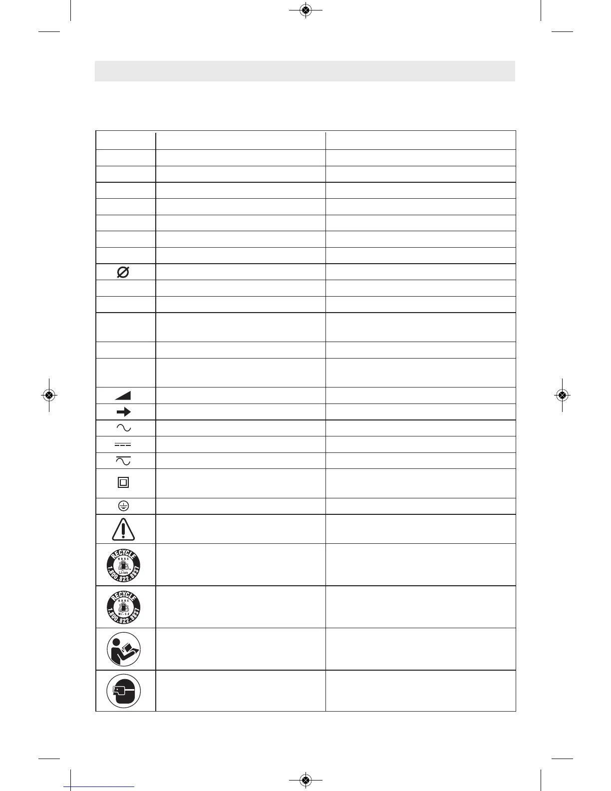 Some of the following symbols may be used on your tool. Please study them