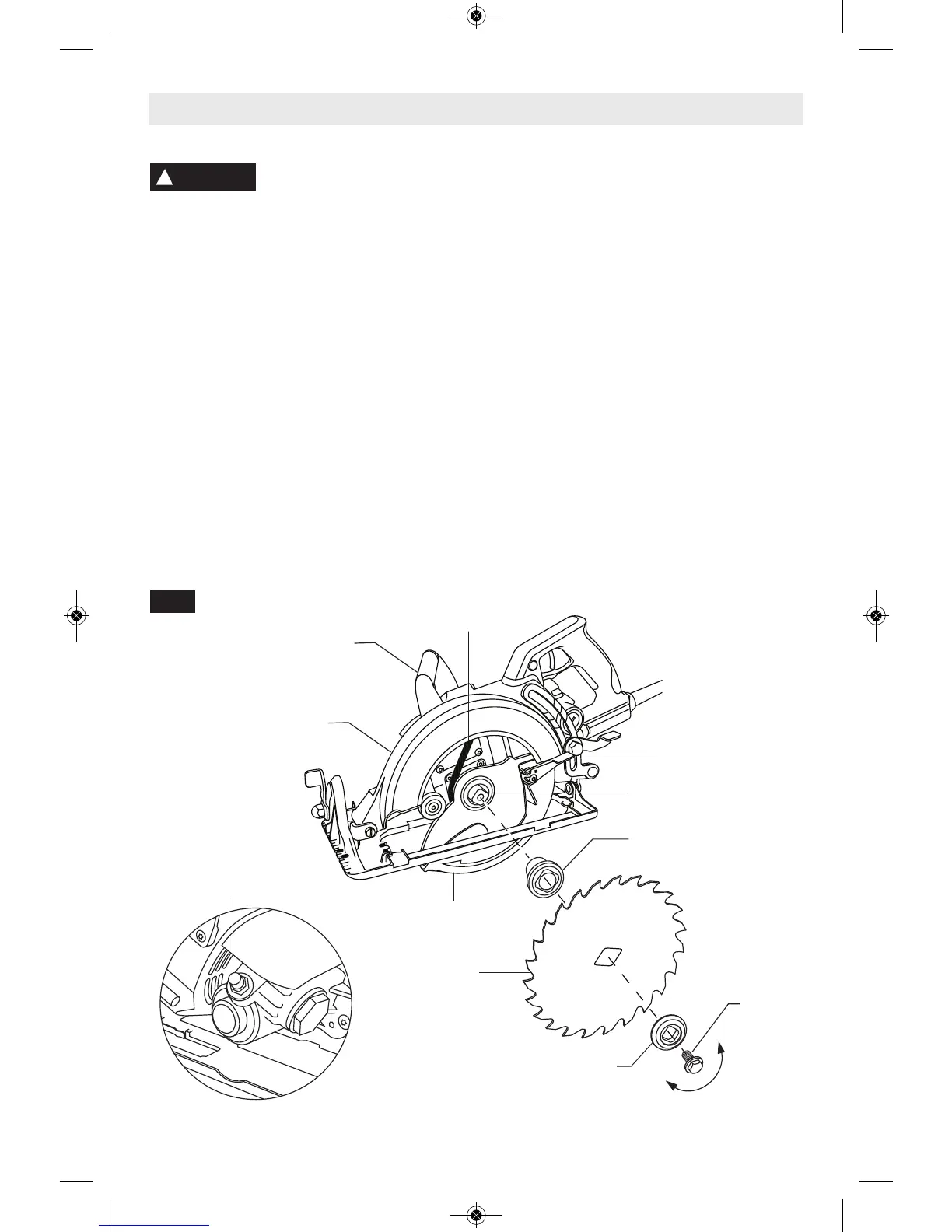 lock button en gages. Saw shaft is now locked.