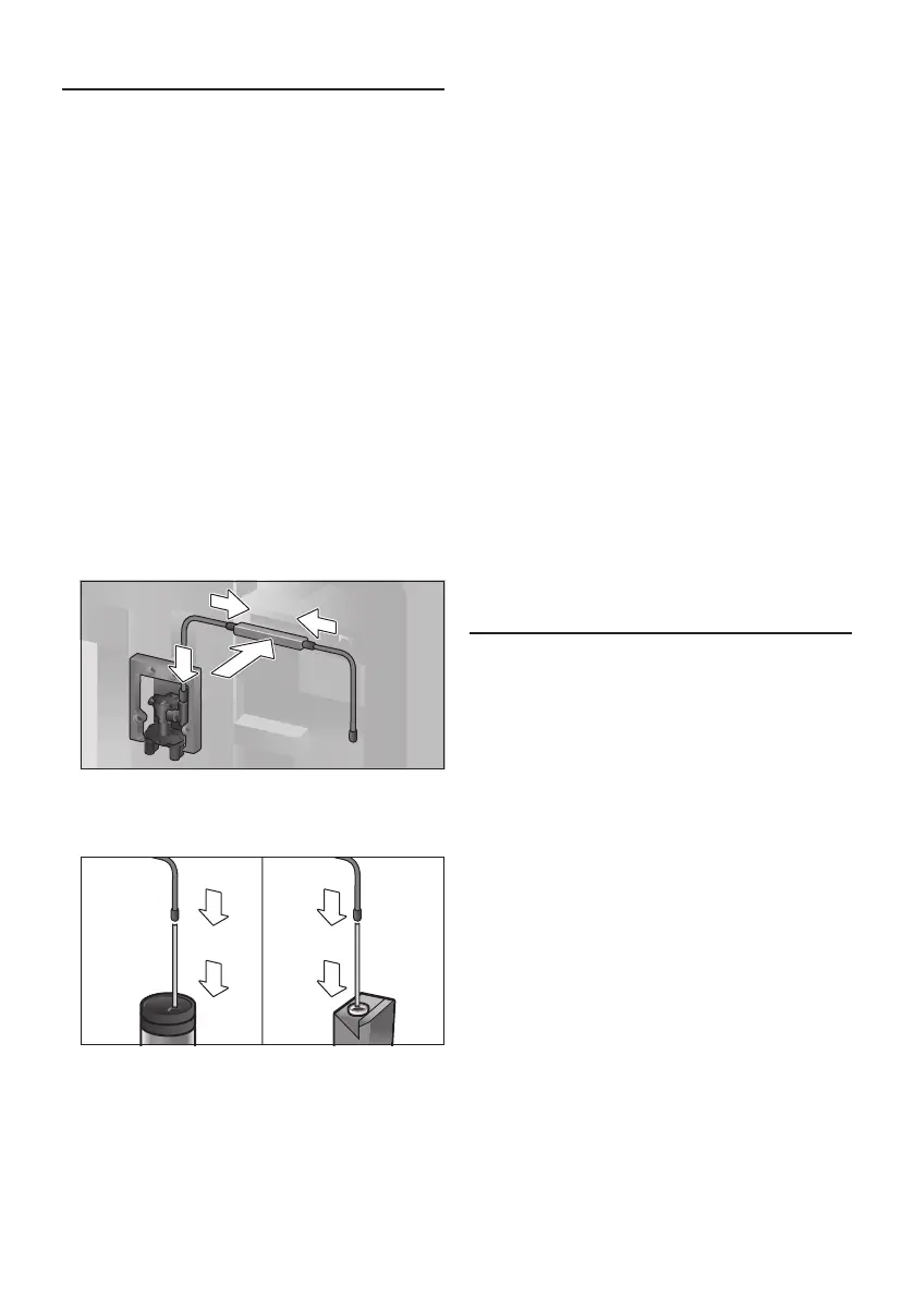 将牛奶软管插上固定并将另一头插入牛奶