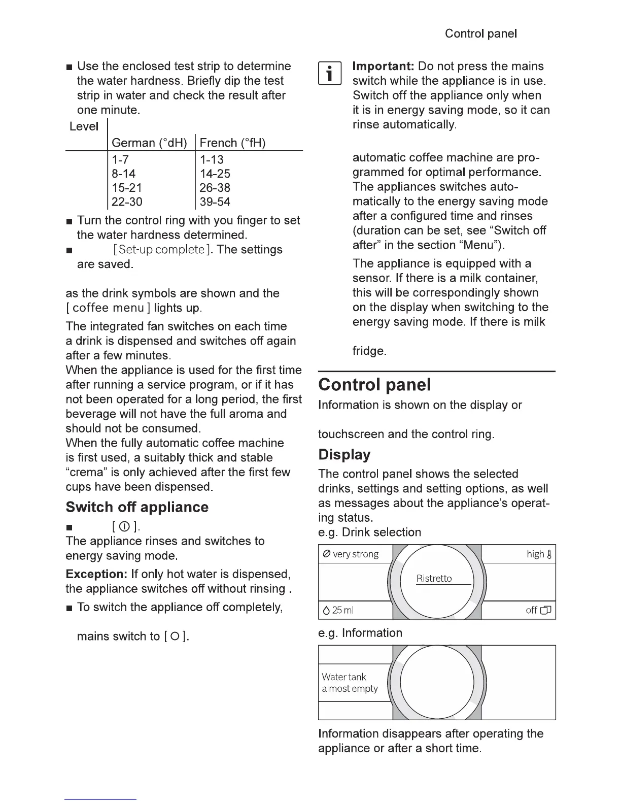 Bosch CTL636ES1 - Water Hardness Setting and Appliance Control; Water Hardness Determination & Setting; Control Panel Operation and Display