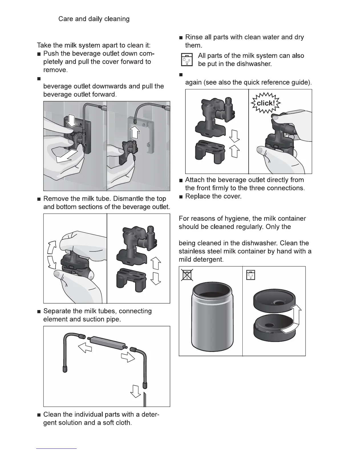 Bosch CTL636ES1 - Manual Milk System Cleaning; Dismantling and Cleaning Milk System Parts; Milk Container Cleaning Instructions