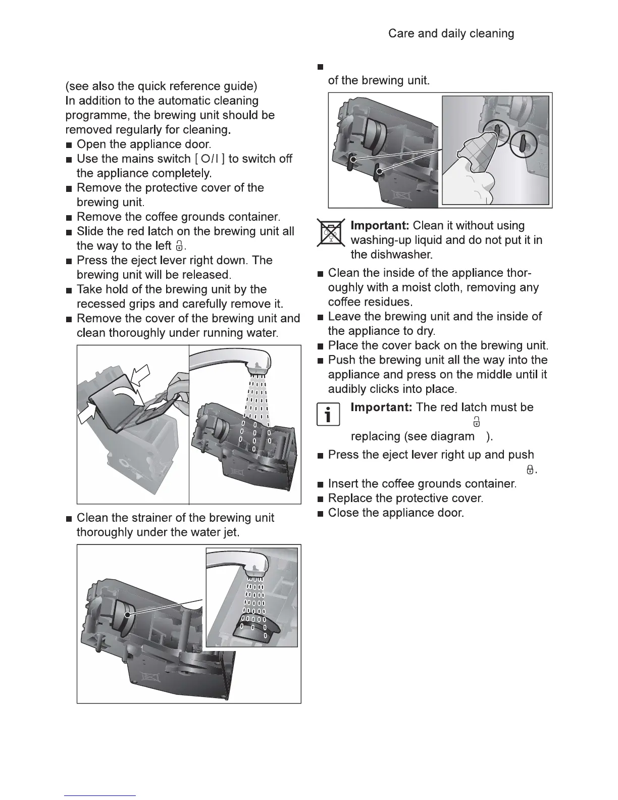 Bosch CTL636ES1 - Cleaning the Brewing Unit; Removing and Cleaning Brewing Unit; Cleaning Strainer and Interior