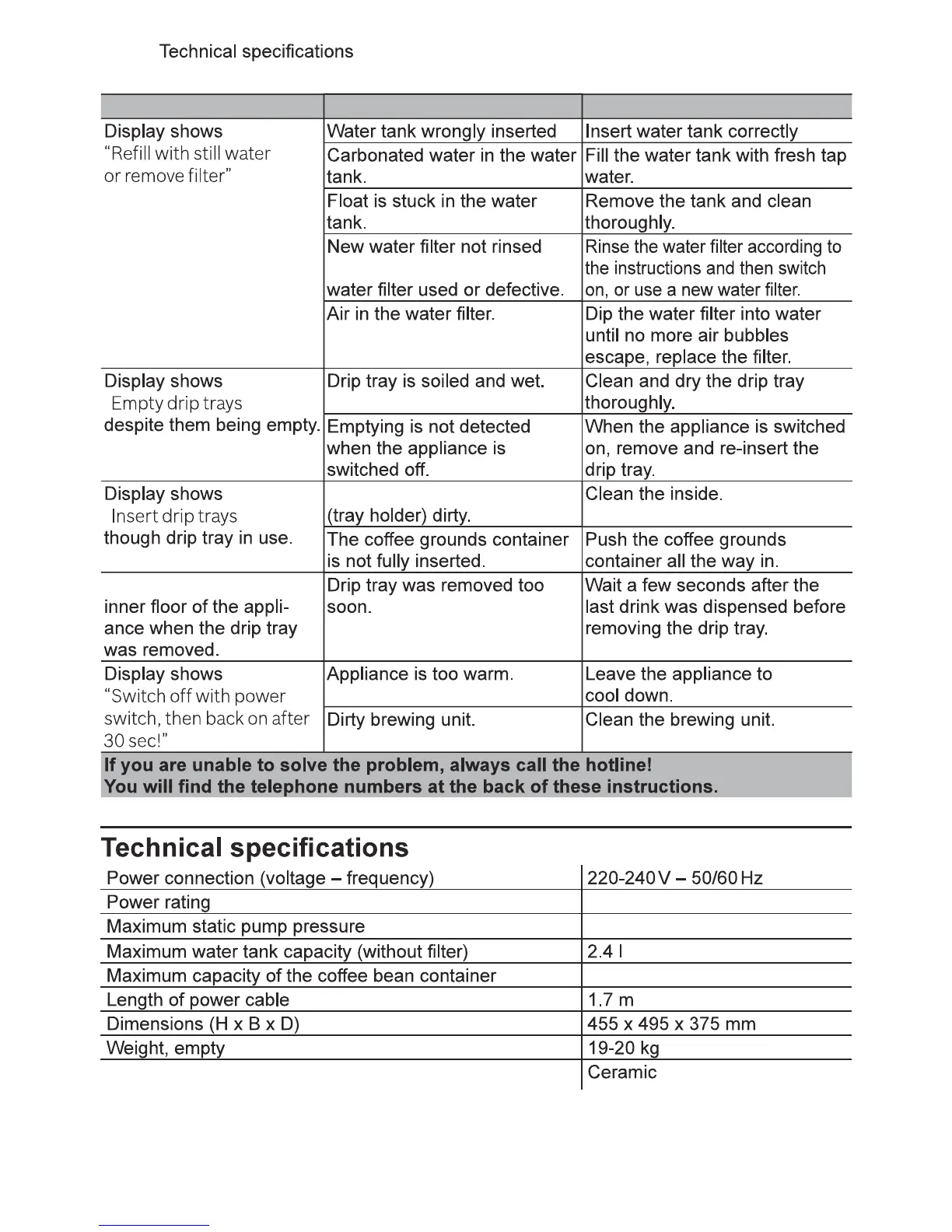 Bosch CTL636ES1 - Technical Specifications; Power Connection and Rating; Performance and Capacity Specifications; Dimensions, Weight, and Grinding Unit