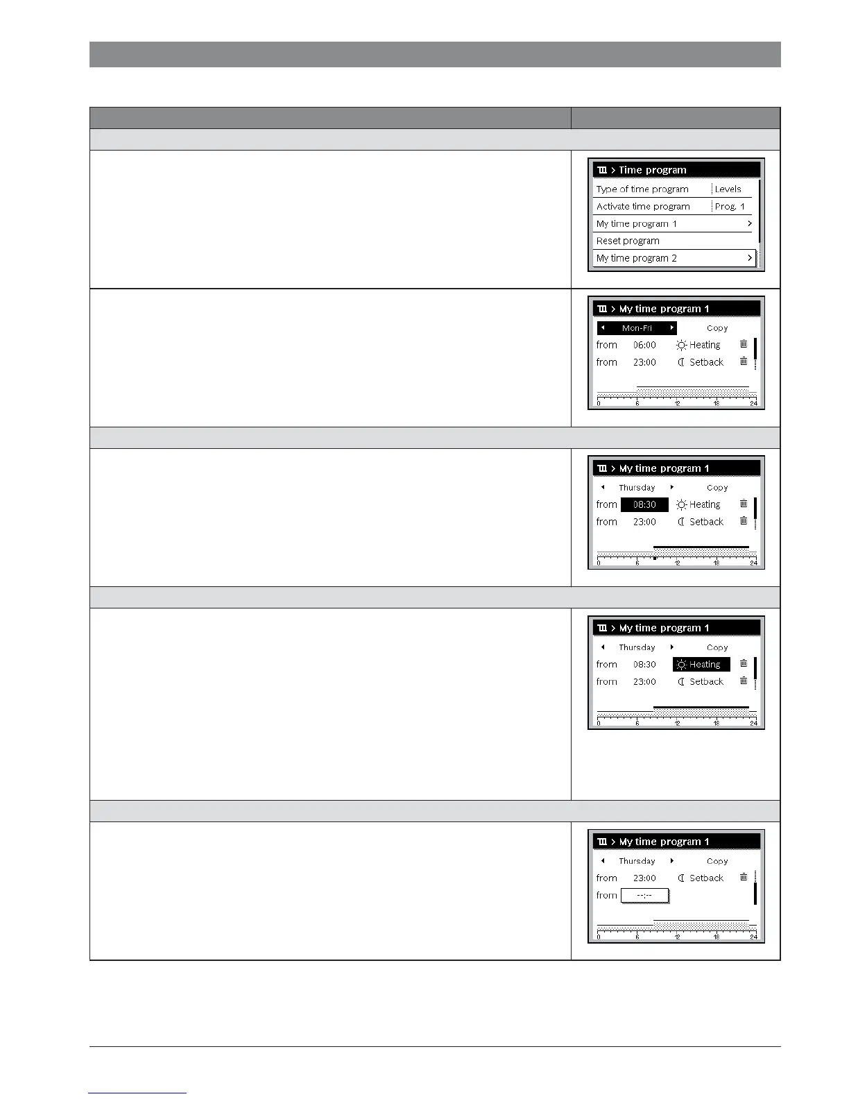 ▶ Open the menu for adapting a time program for the heating system (Æ page 23).
