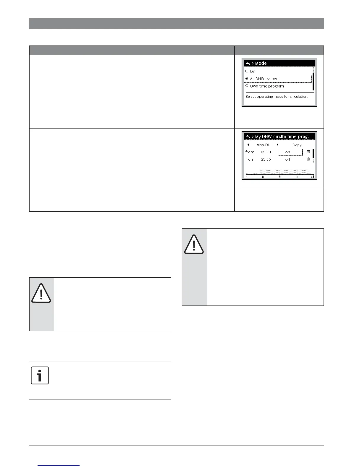 The time program for circulation is independent of the time program for DHW heating.