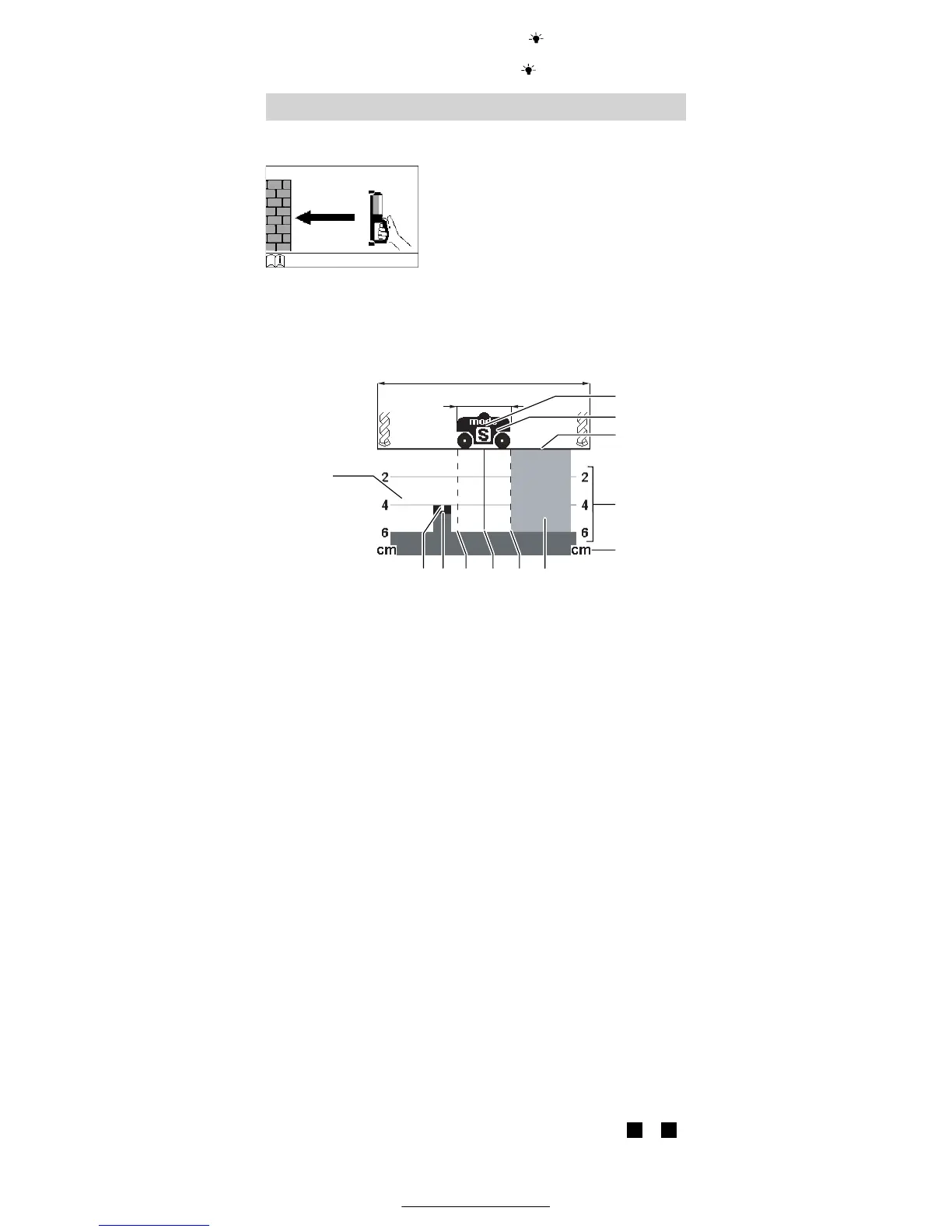 na faixa branca l. A escala de profundidade d no display mostra a pro-