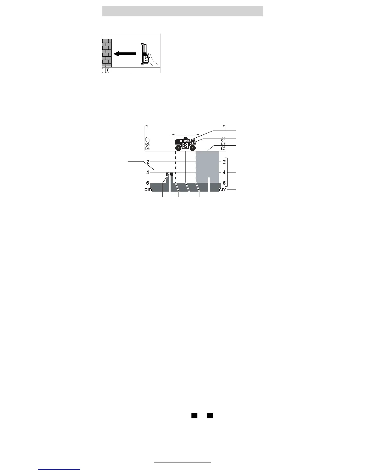 Måleresultatene anvises etter noen centimetre på displayet 3. Til sikring