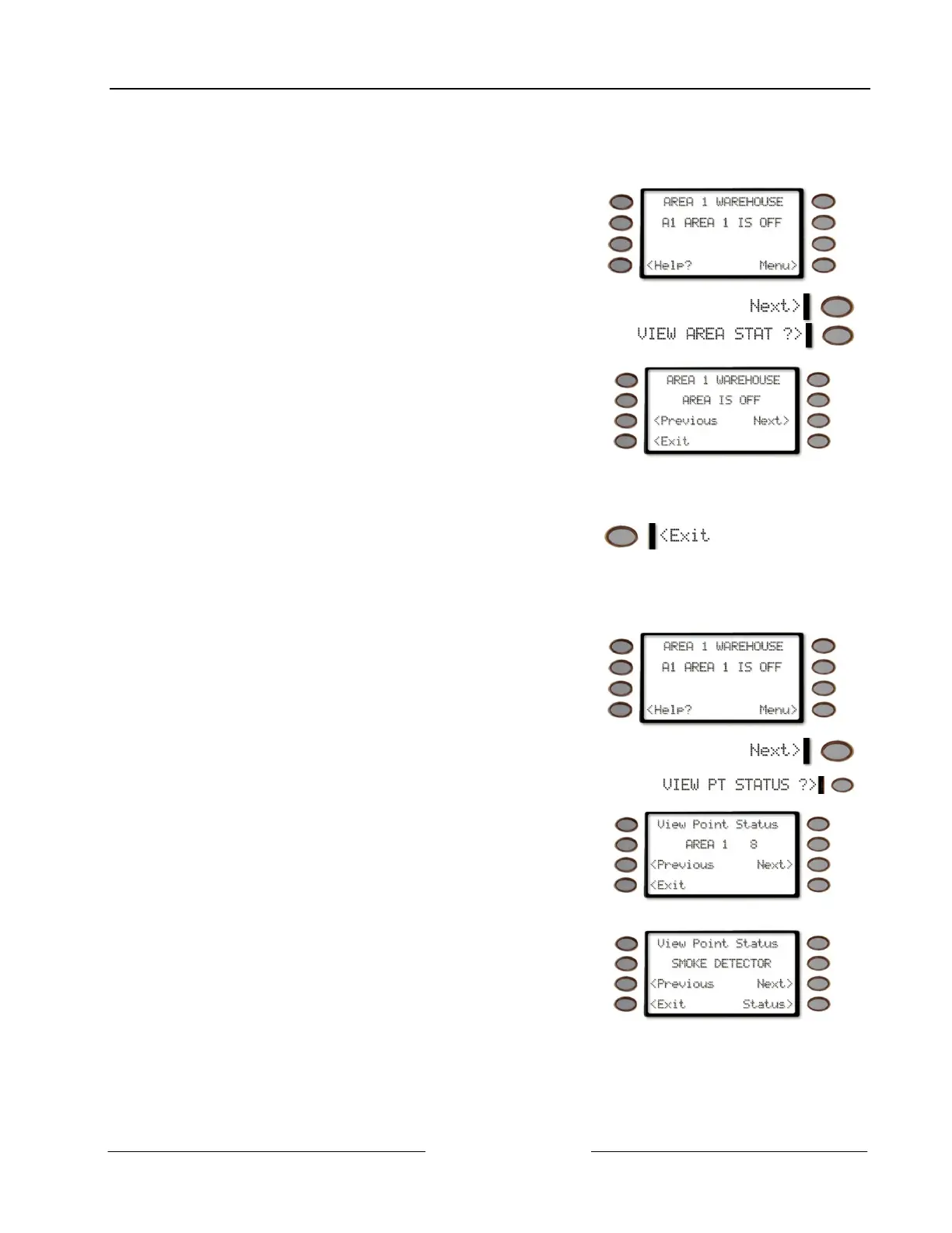 Use this function when you need to know the status (whether armed or disarmed) of areas other than the one you’re in.