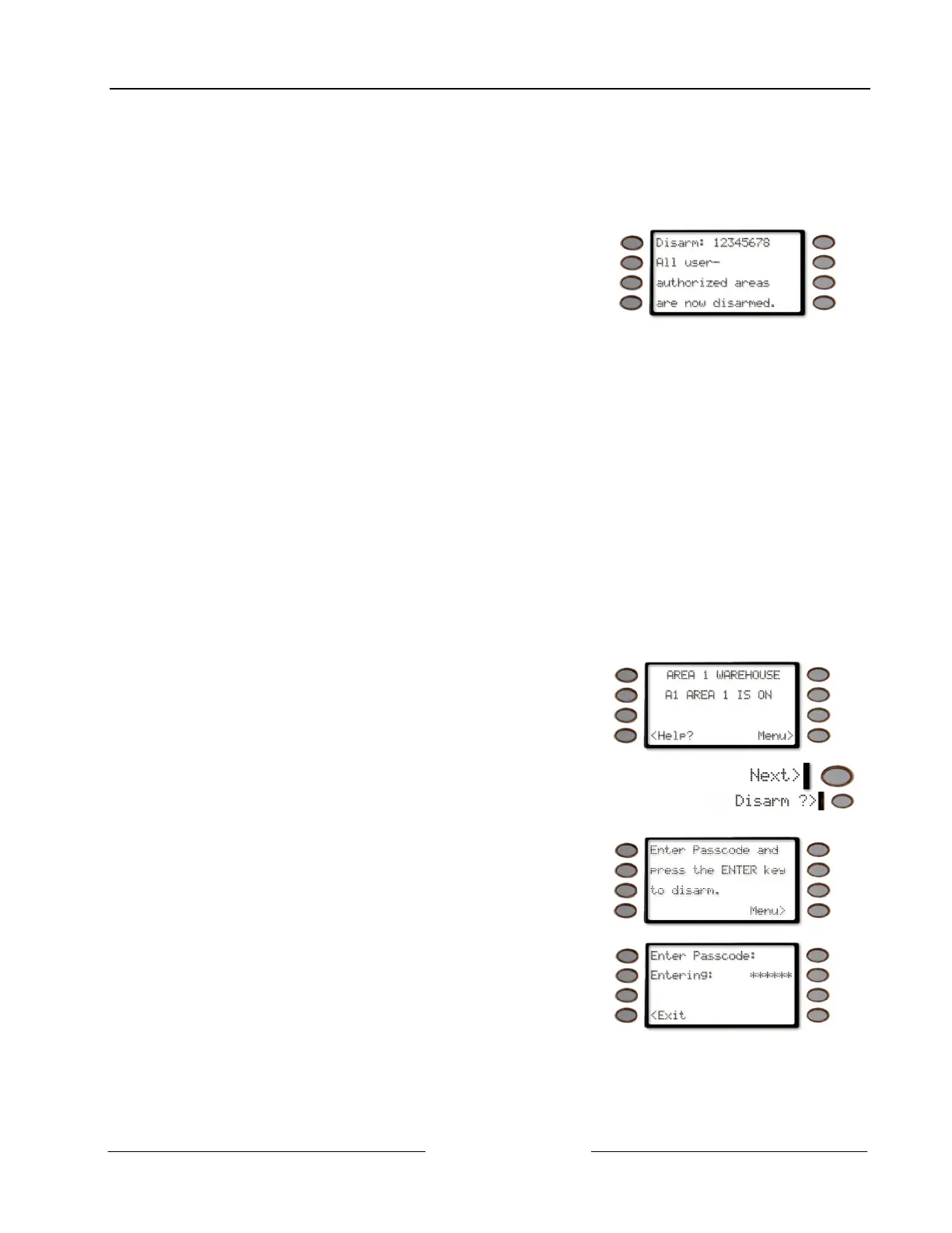 12345678 All user-authorized areas are now disarmed. (Not