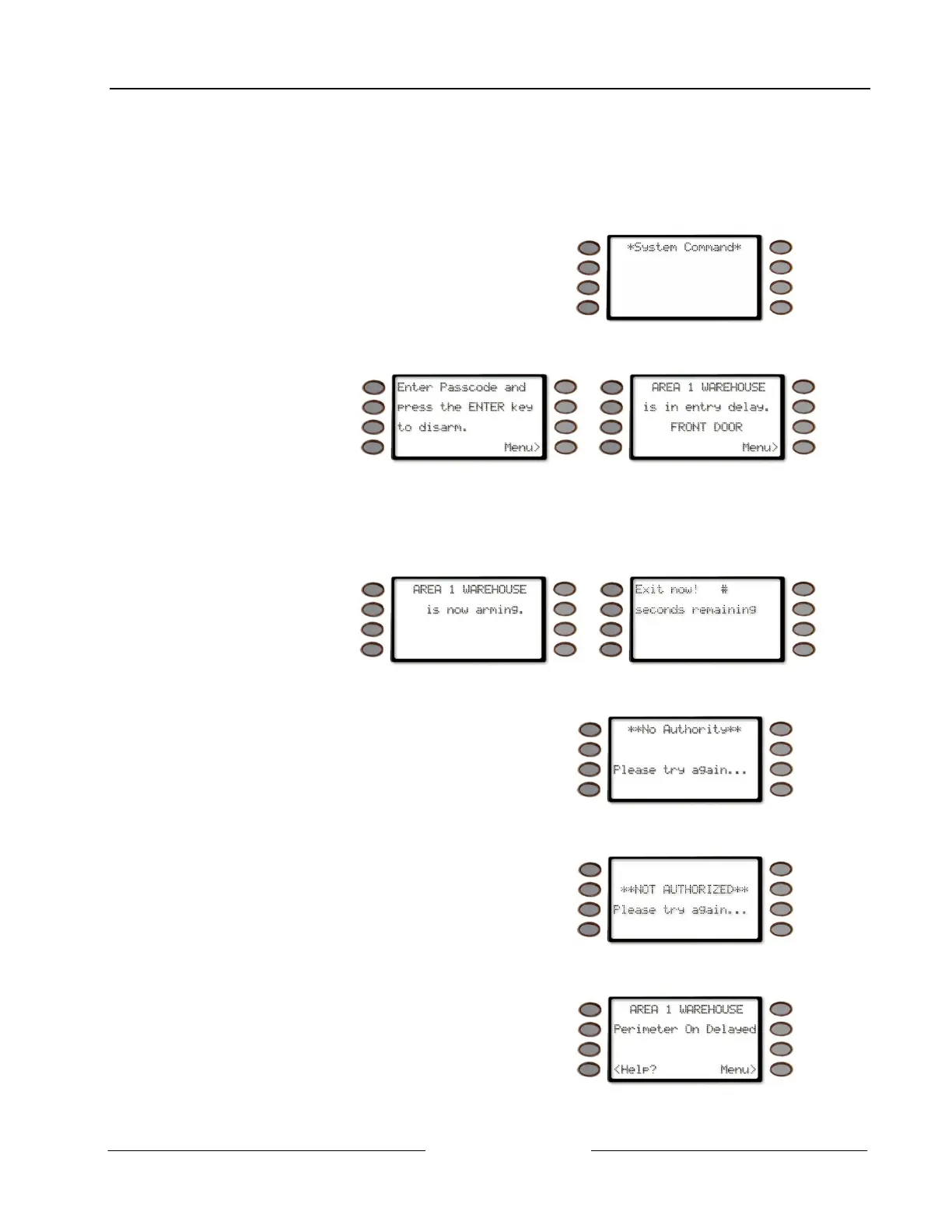 disarm and AREA 1 WAREHOUSE is in entry delay. (AREA 1 WAREHOUSE is used as an example.)