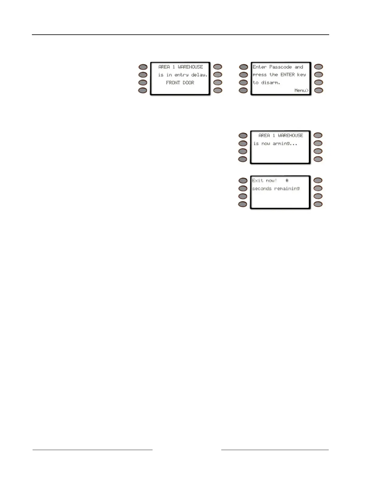 displays AREA 1 NAME TEXT is now arming… then