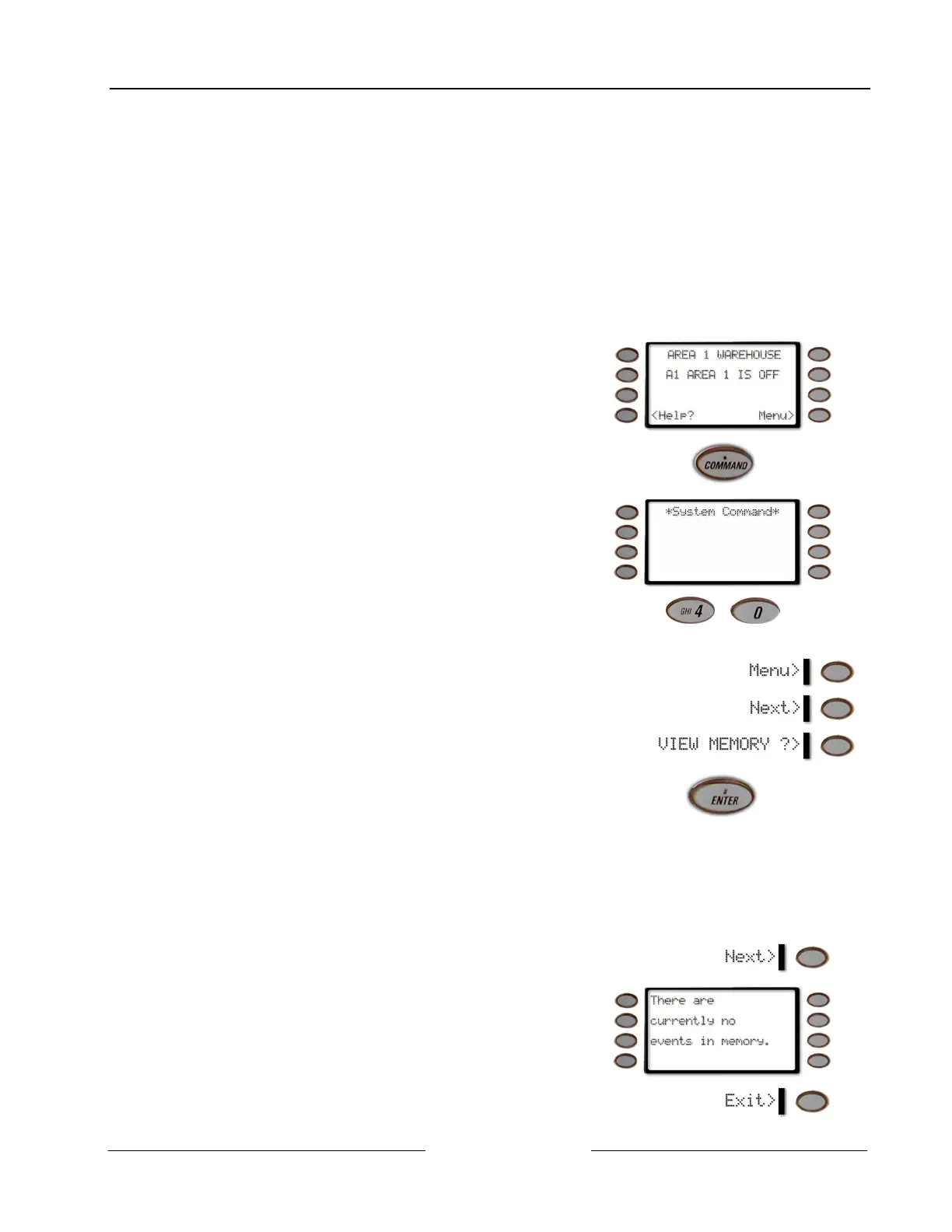 Your system stores events that occurred since the last time memory was cleared. Use COMMAND 40 to view Event