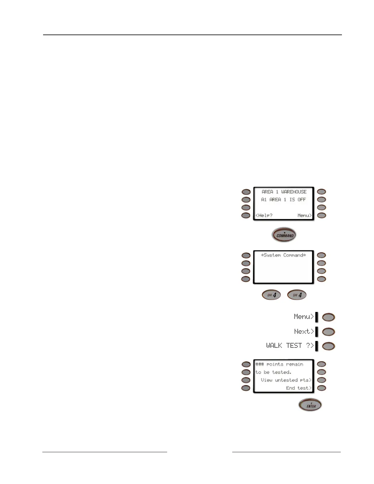Upon initiation, the walk test will test the burglary bell pattern on the bell output and ring the command center burglary