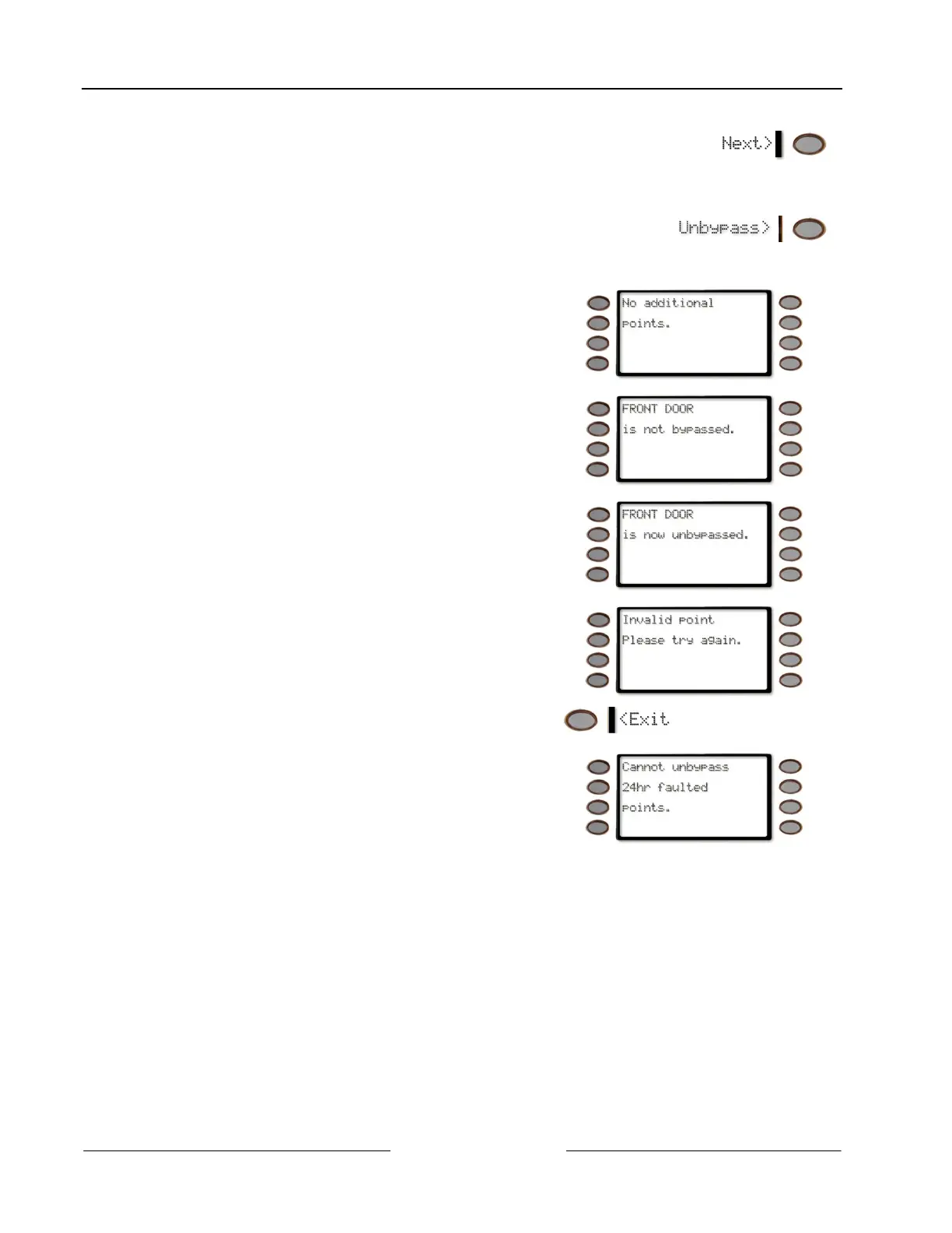 Continuously pressing Next> scrolls through the available points that are currently bypassed.